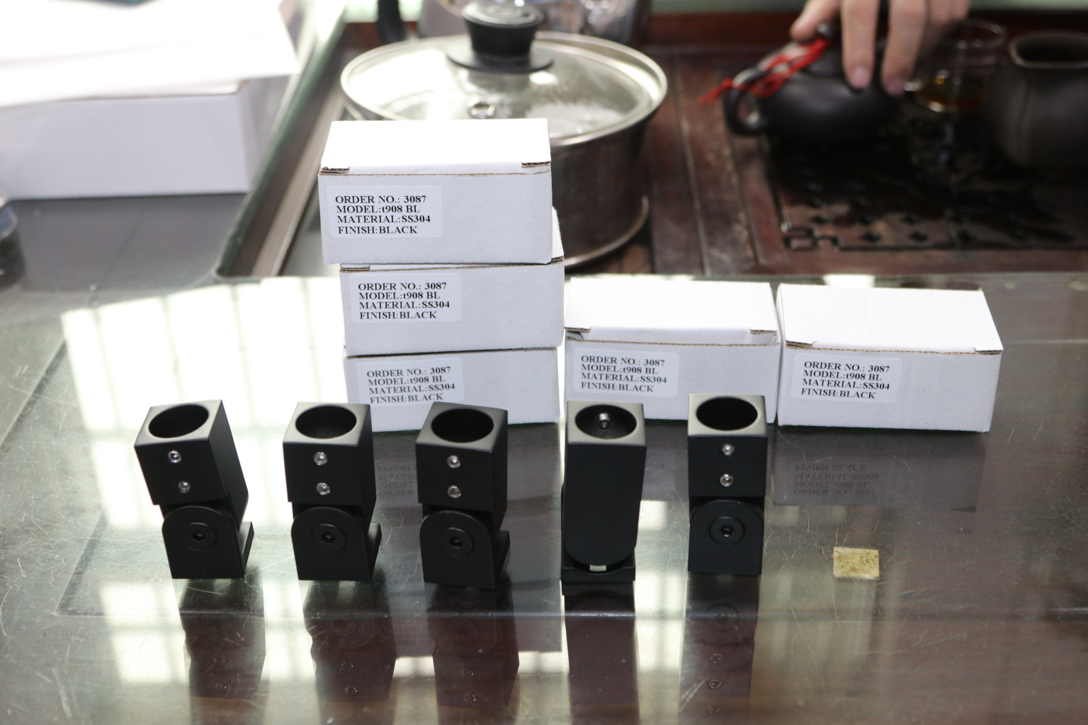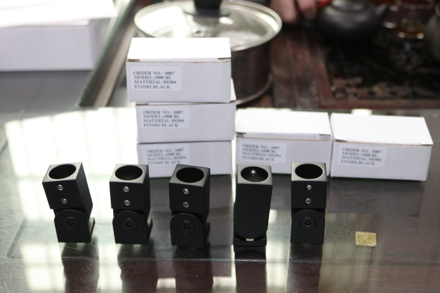Держатель трубы регулируемый, под трубу диаметром 19 мм. Поверхность - черная, материал - нержавеющая сталь AISI 304
