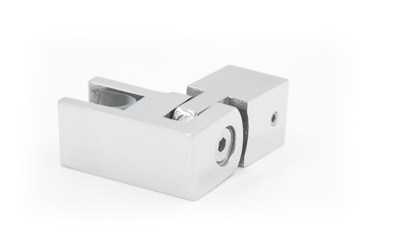 Коннектор предназначен для крепления трубы 15х15 мм к стеклу под произвольным углом при монтаже штанг верхней обвязки душевых кабин.