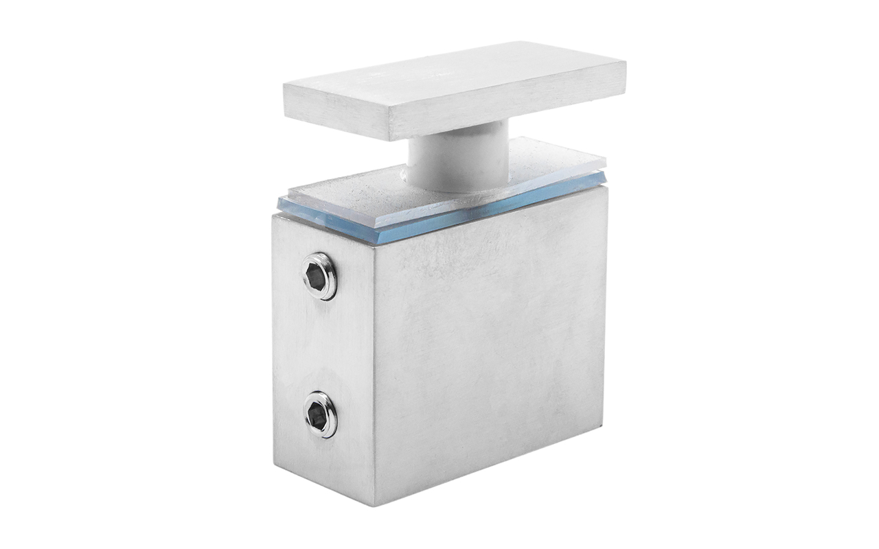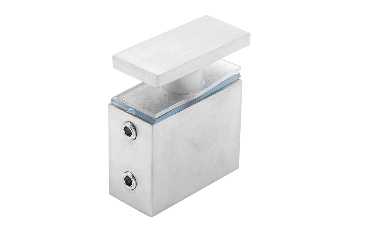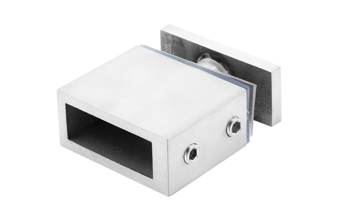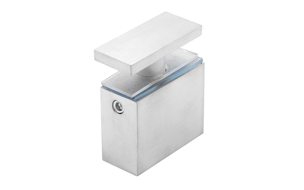 Крепится к стеклу через отверстие 14мм, соединительные прокладки препятствуют прямому контакту металла и стекла , что способствует сохранению целостности перегородки. Габаритные размеры прямоугольной станки составляют 30х10 мм.