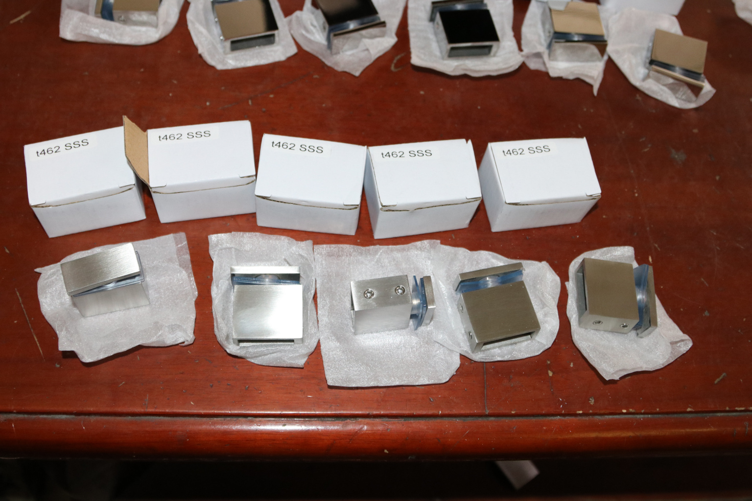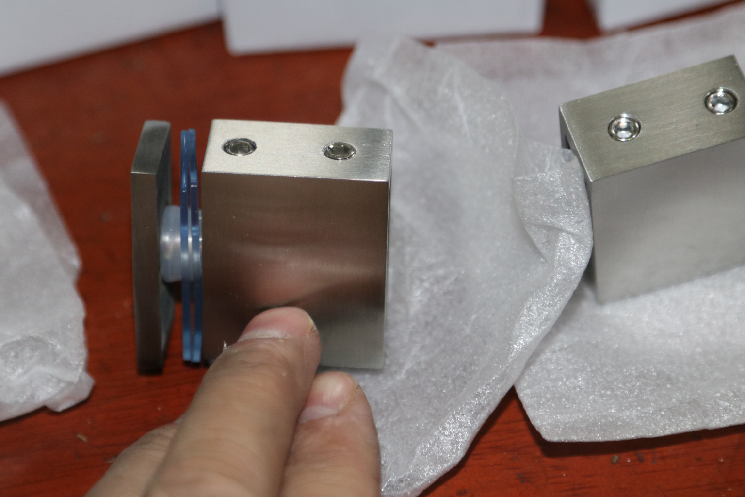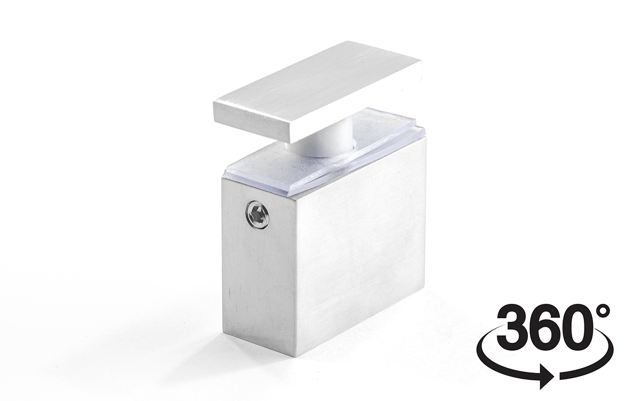 Крепится к стеклу через отверстие 14мм, соединительные прокладки препятствуют прямому контакту металла и стекла , что способствует сохранению целостности перегородки. Габаритные размеры прямоугольной станки составляют 30х10 мм.