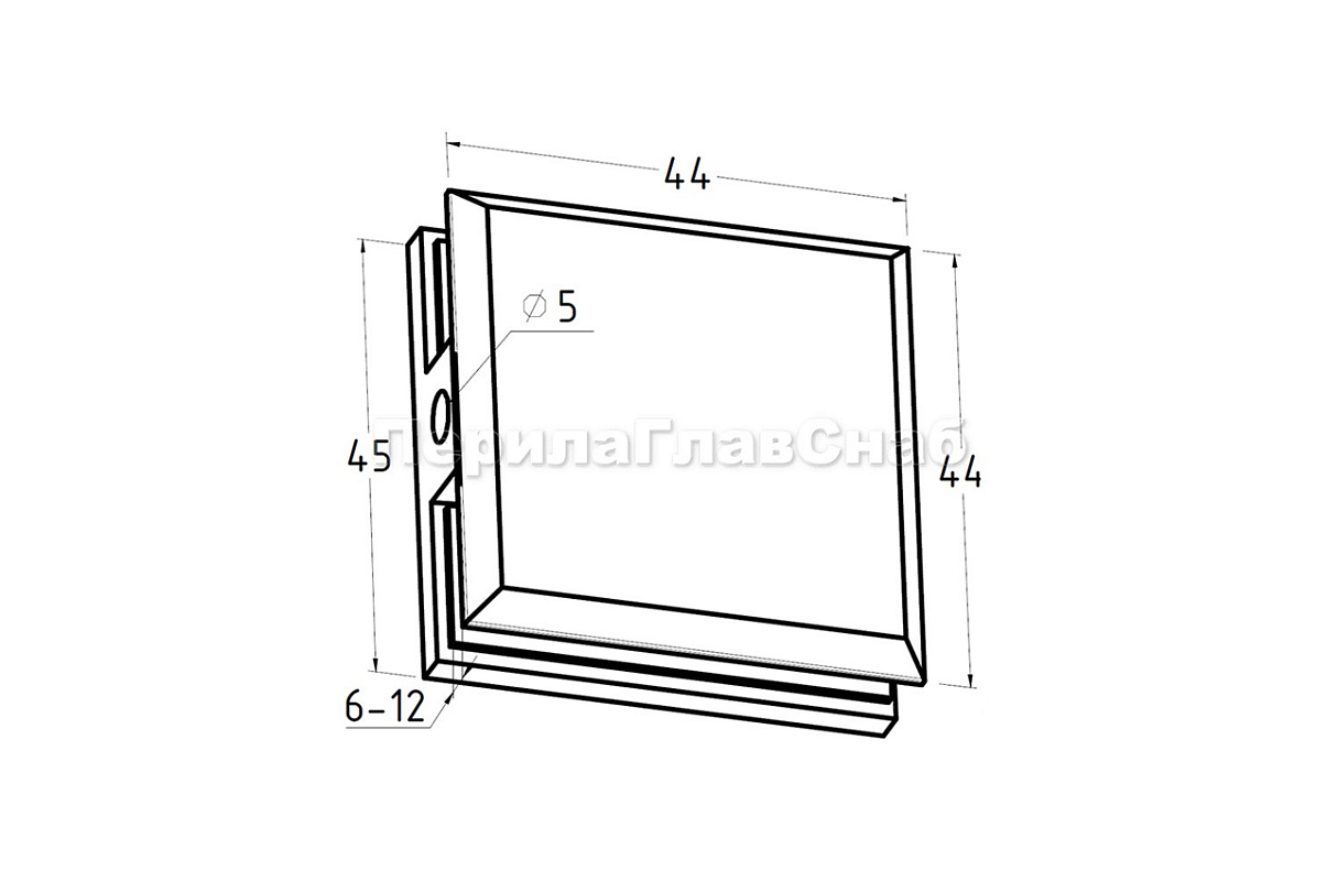 Коннектор для душевой кабины стена-стекло, 45х45, AISI 304 полировка, вырез 61 t720 PSS