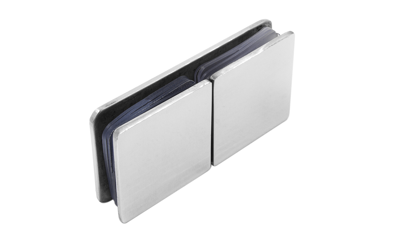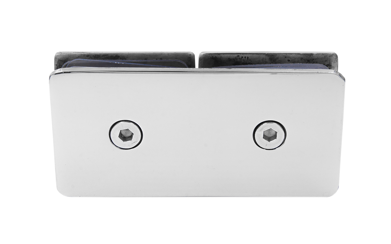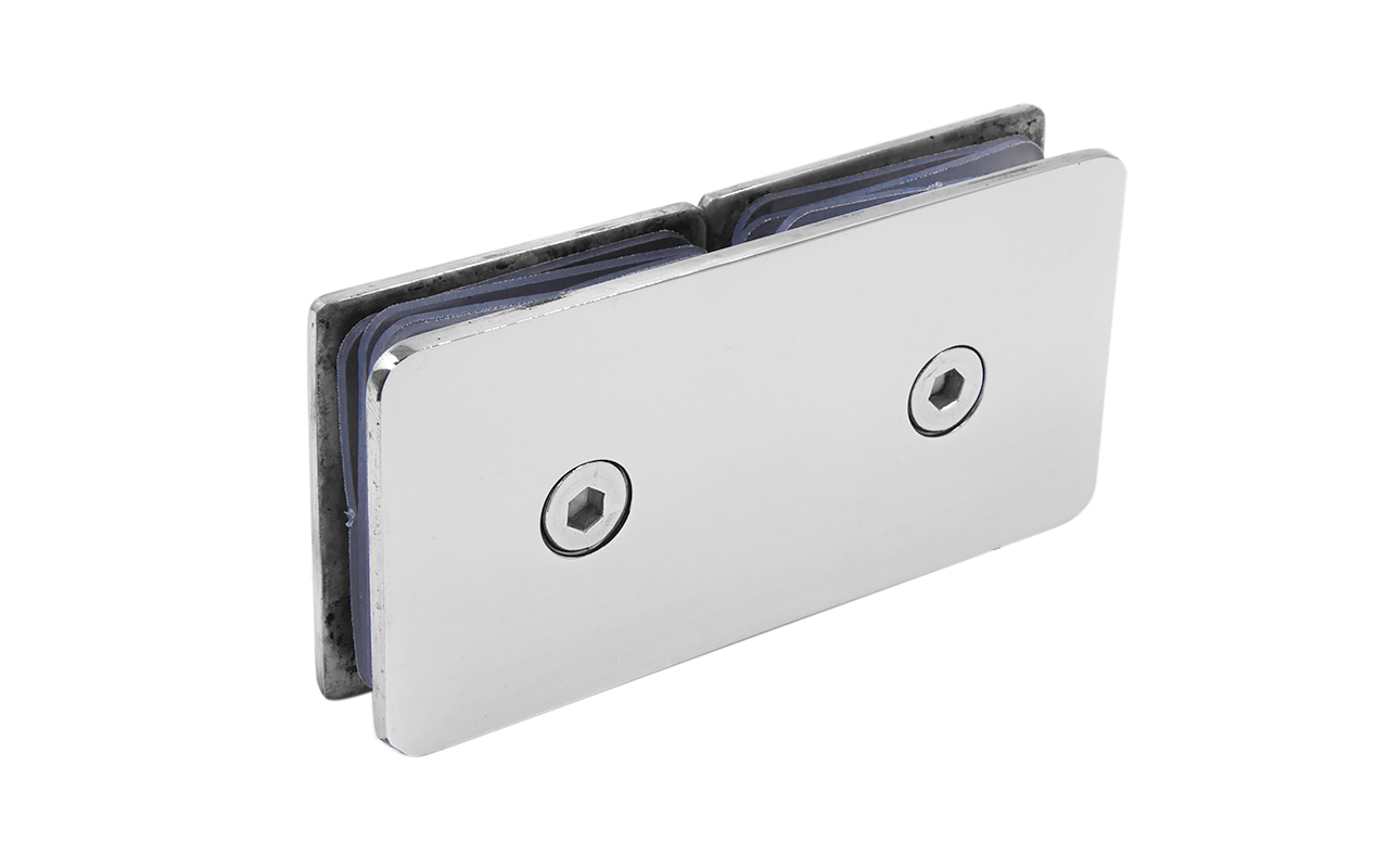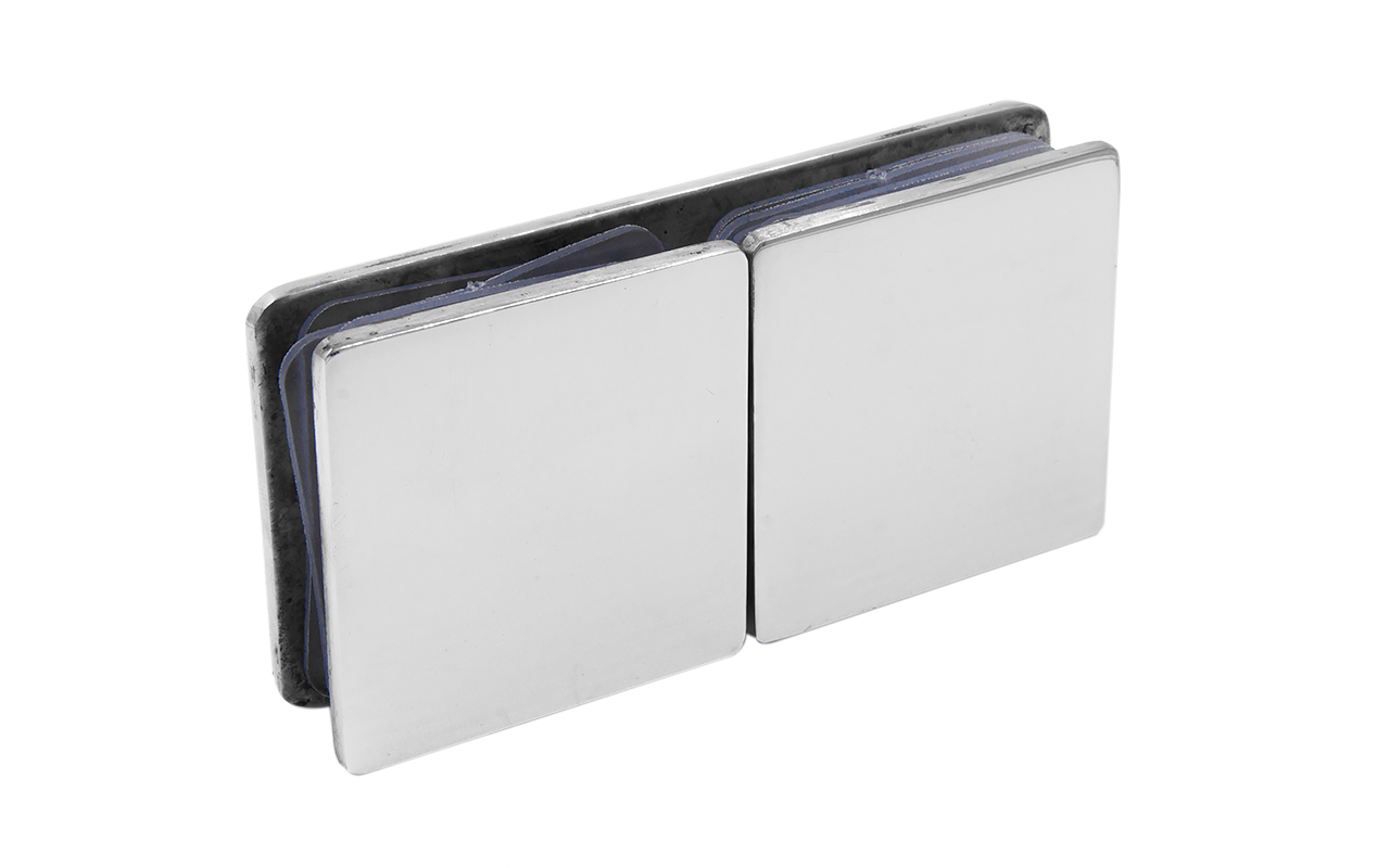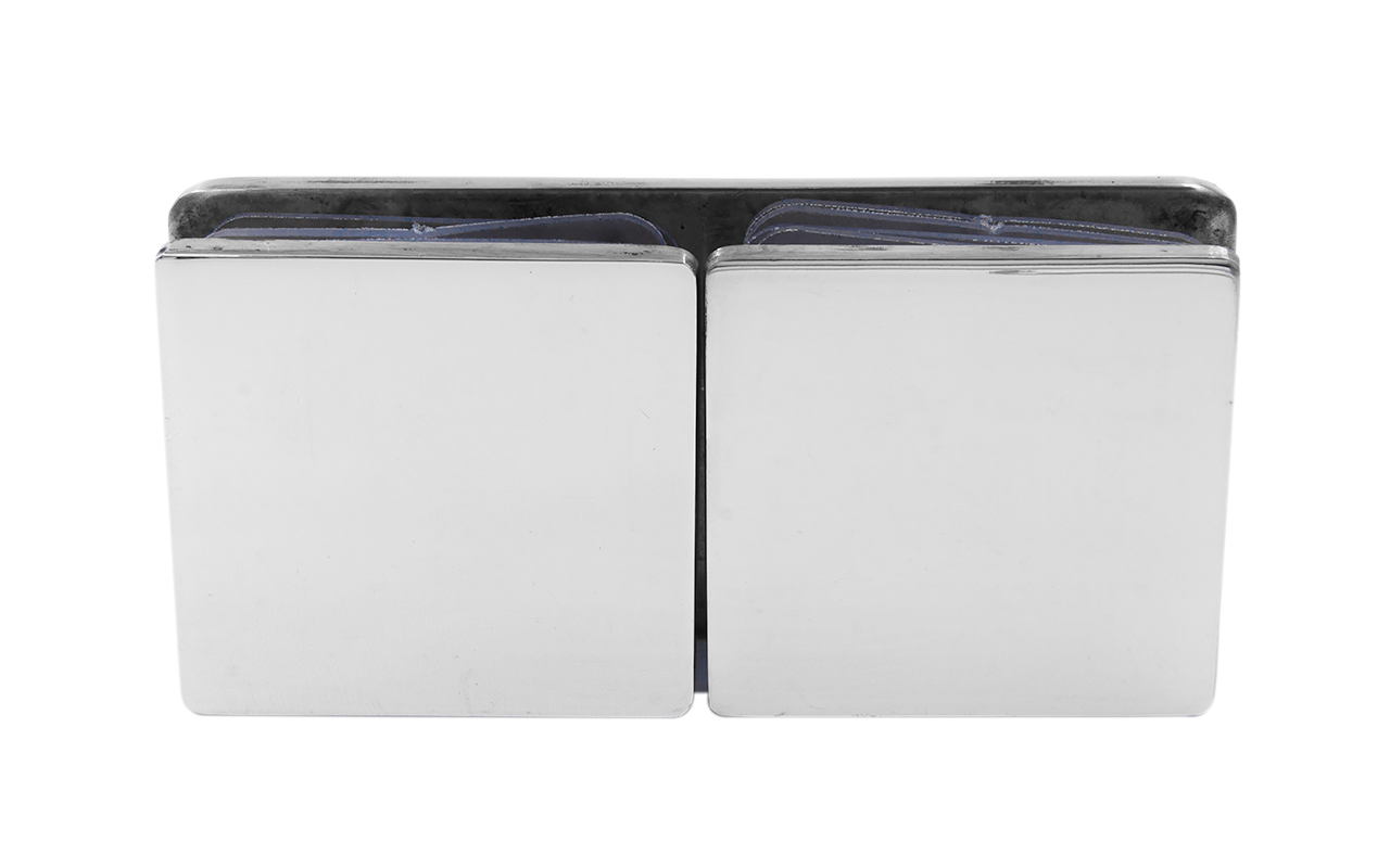 Коннектор для душевой кабины стекло-стекло 180°, 45х45 мм. Материал - латунь-хром, поверхность - полированная