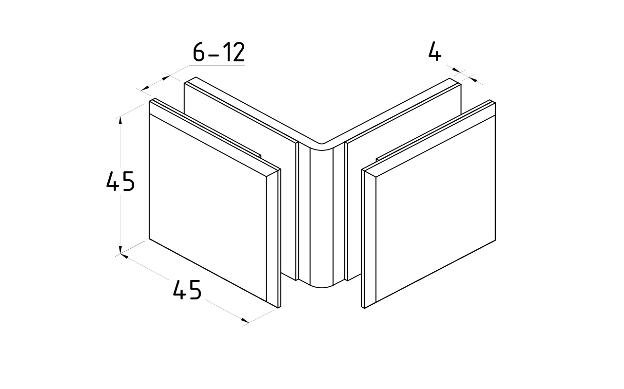 Коннектор для душевой кабины стекло-стекло 90°, 45х45, полированный, t735 PSS
