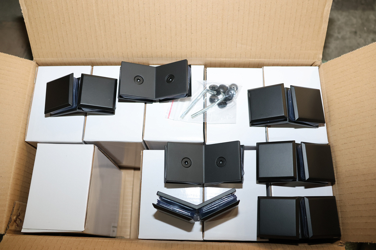 t726-2 SSS - коннектор для душевой кабины стекло-стекло 135° 45х45 мм. Деталь шлифованная, марка стали - AISI 304, имеет сглаженные углы. менее практичен для дизайнерских решений.
