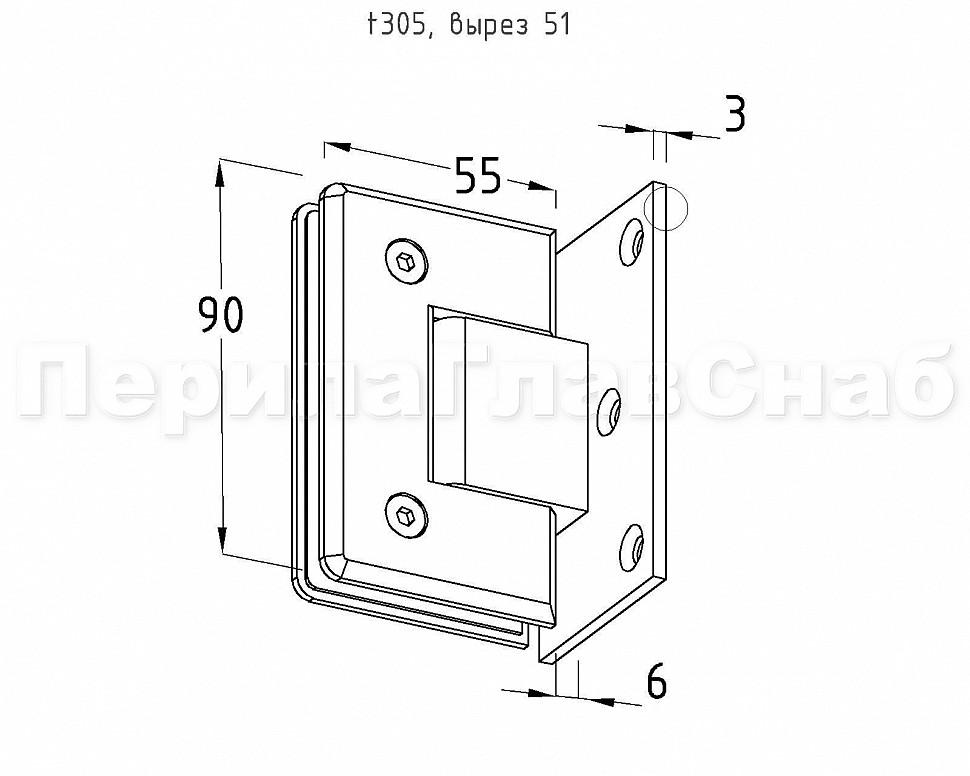 Петля для душевой кабины стена-стекло 90° 90х55 мм латунь-хром, полированная t305 PC