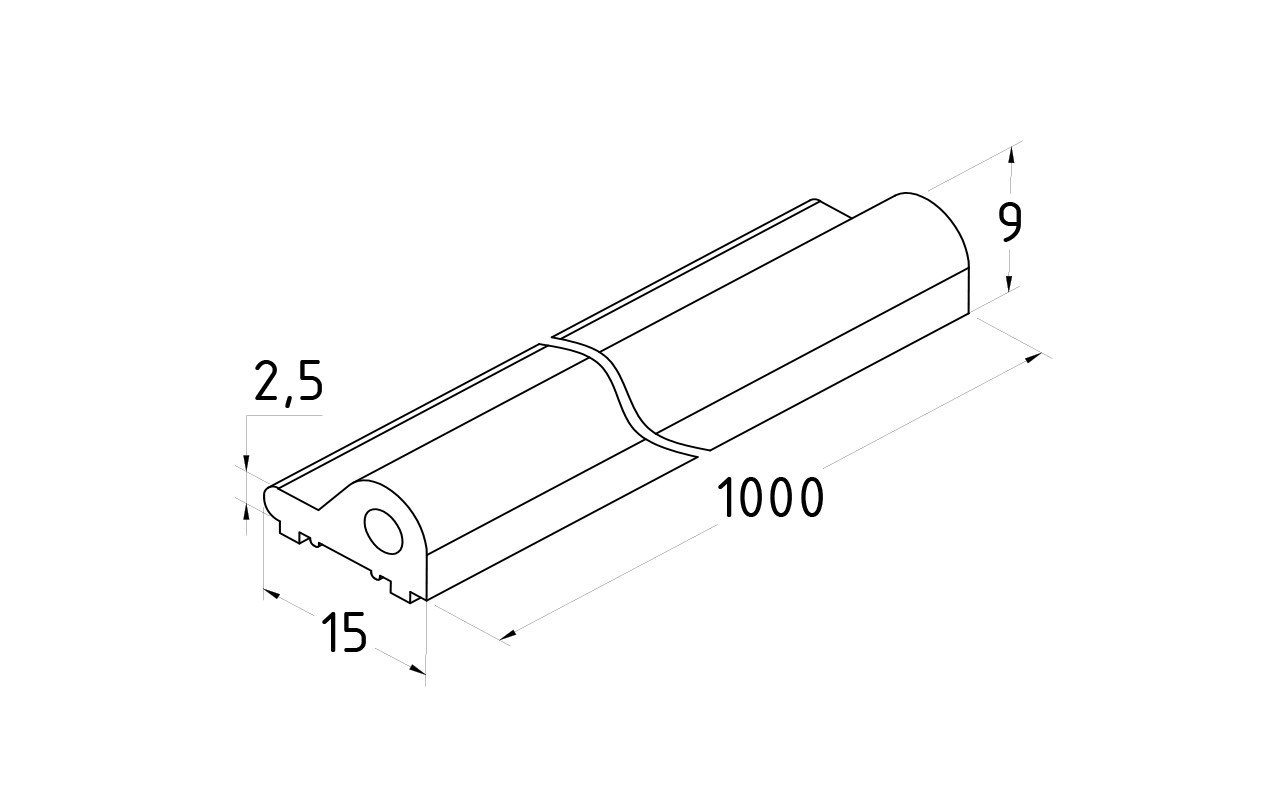 Порог для душевых кабин, длина 1000 мм. Материал - алюминий, поверхность - химическая полировка