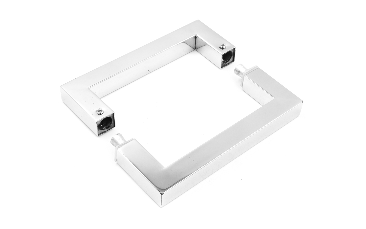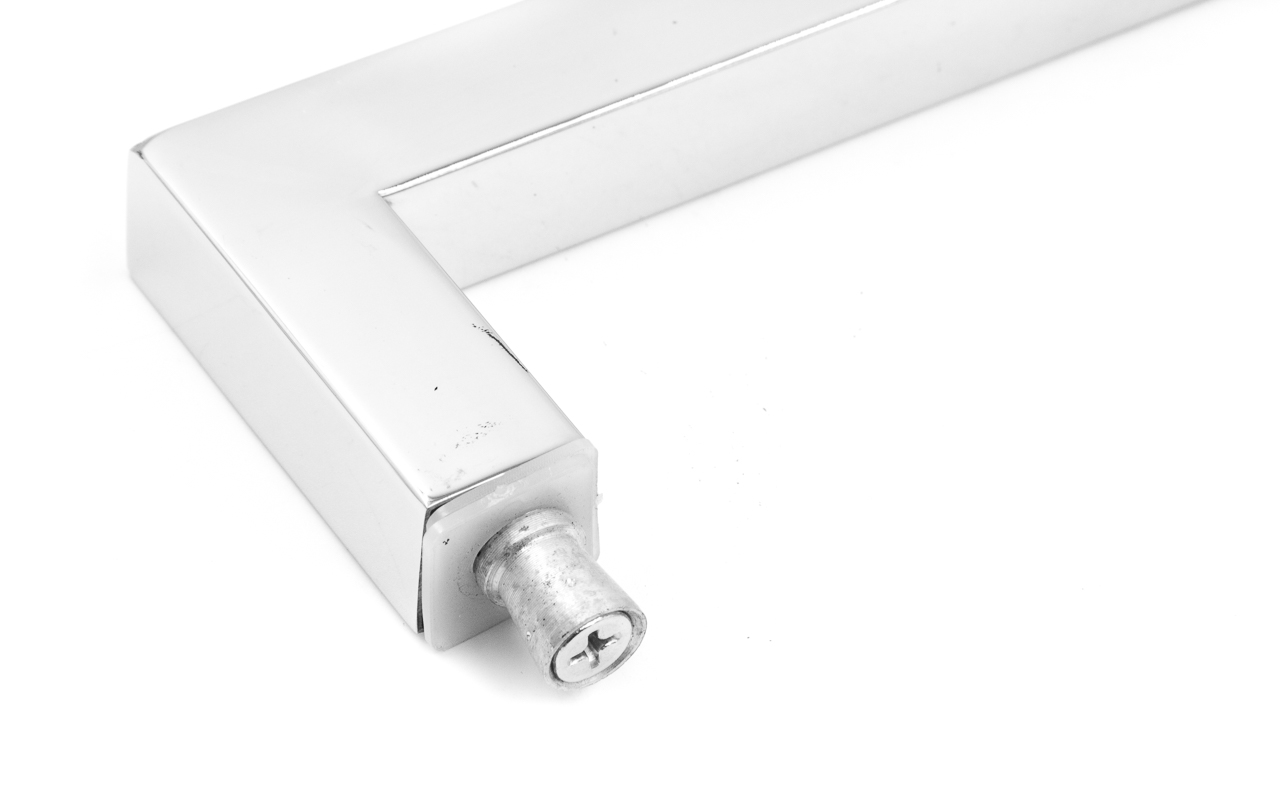 подготавливается отверстие в стекле с вырезом 10-12мм и с двух сторон закручивается ручка