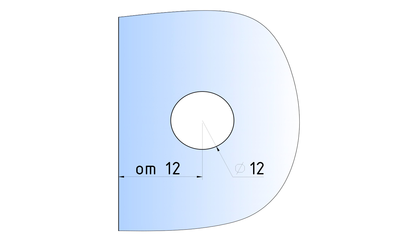 подготавливается отверстие в стекле с вырезом и с двух сторон закручивается ручка