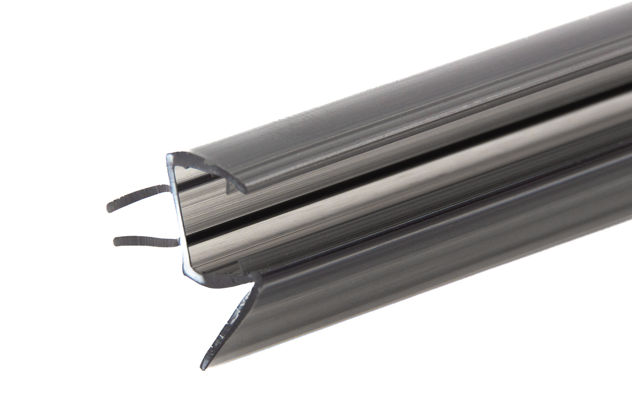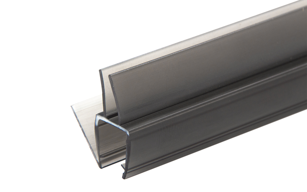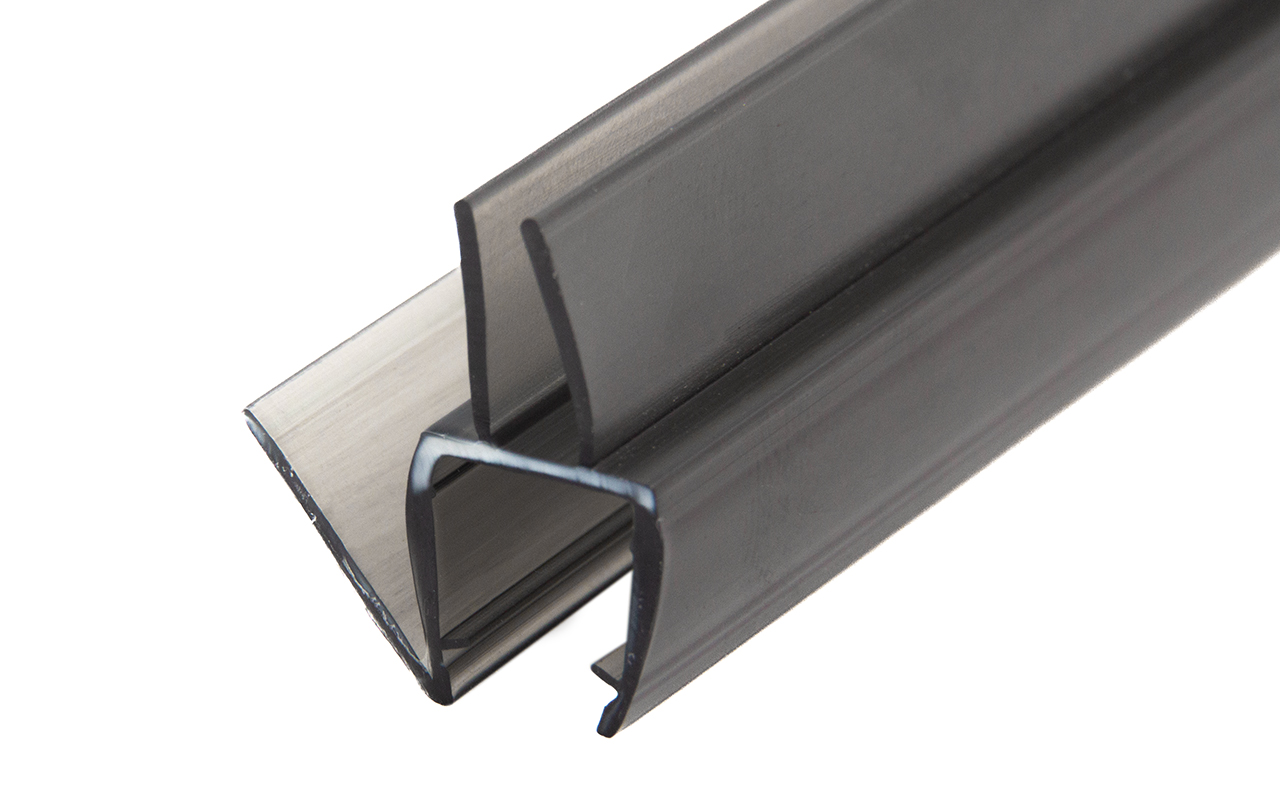 Уплотнитель имеет исполнение черной полупрозрачной поверхности, выполнен из материала ПВХ. Имеет. За счет своих свойств (стойкость к щелочам, минеральным маслам и многим кислотам) прекрасно подходит для крепления стеклянного листа по всему периметру. Позволяет герметично соединять стеклянные панели со стеной, что гарантируют отсутствие течи в вертикальной части конструкции. Этот уплотнитель применим в сочетании со стеклом толщиной до 8 мм. Лучше всего подходит для установки в пол.
