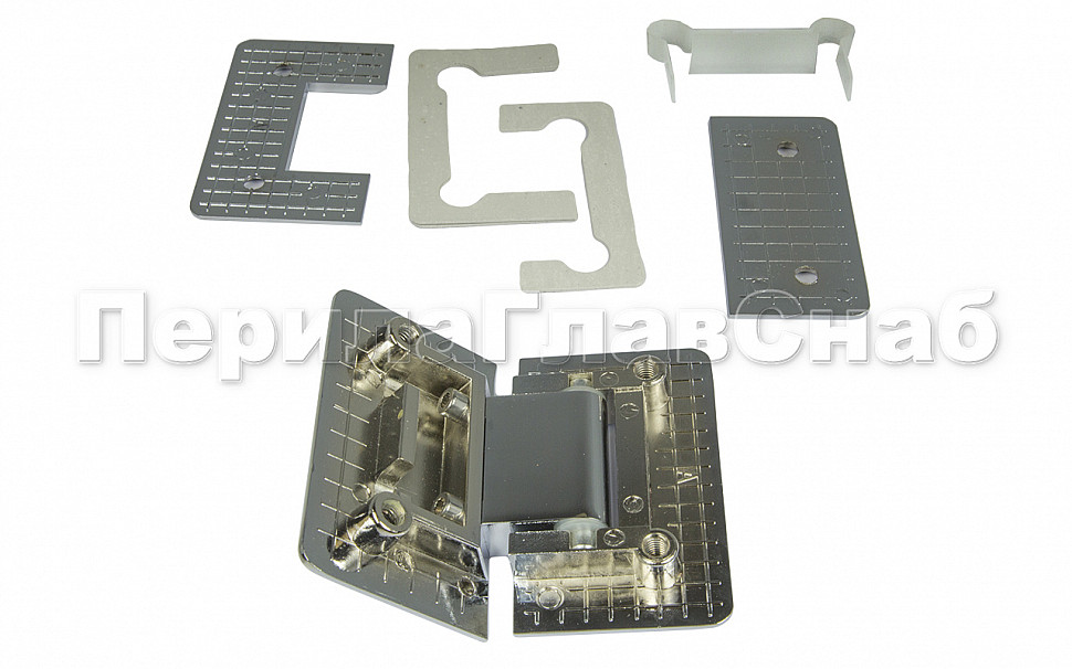 Крепление предусмотрено с двух сторон на 4 винта со шляпками заподлицо (по 2 винта на каждую сторону). Размер одной стороны петли составляет 90х55 мм. Петля стекло-стекло крепится с обеих сторон на стеклянные поверхности, плотно прижимаясь к ним своими металлическими зажимами.