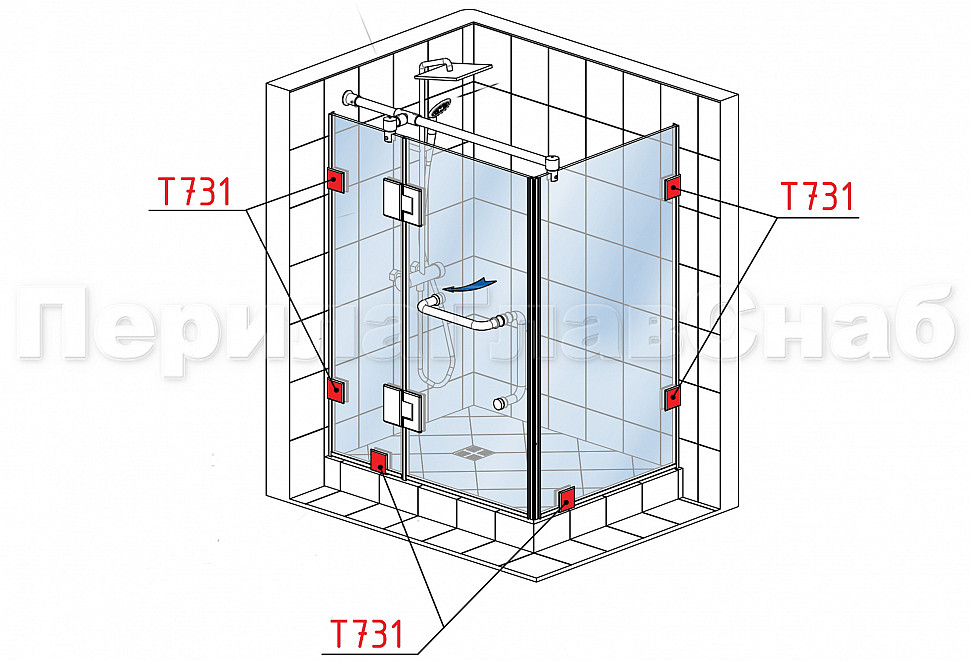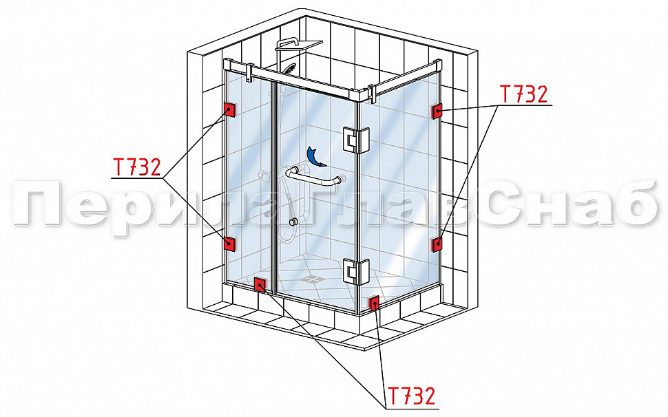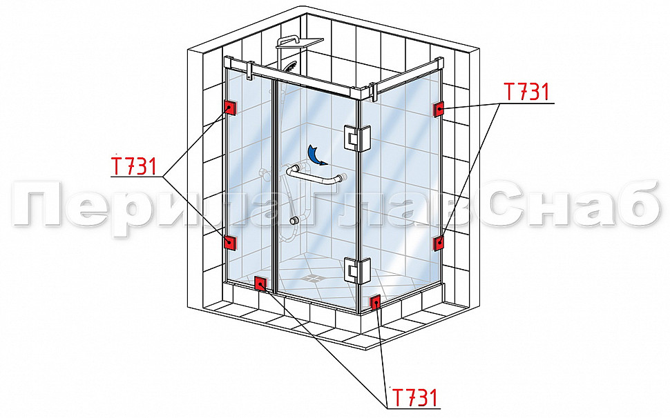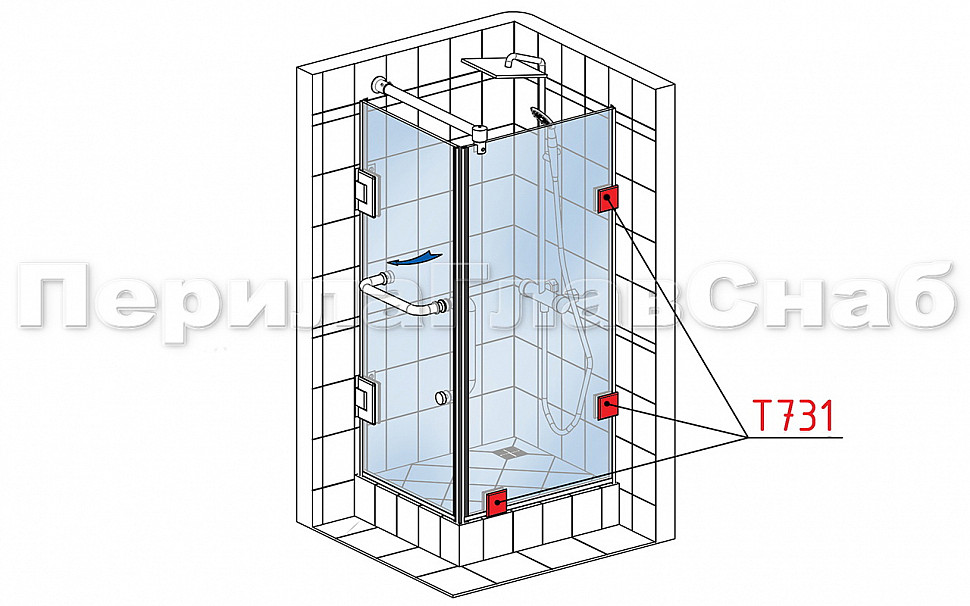 Коннектор для душевой кабины стена-стекло 90° 45х45 мм латунь-хром, полированный t731 PC