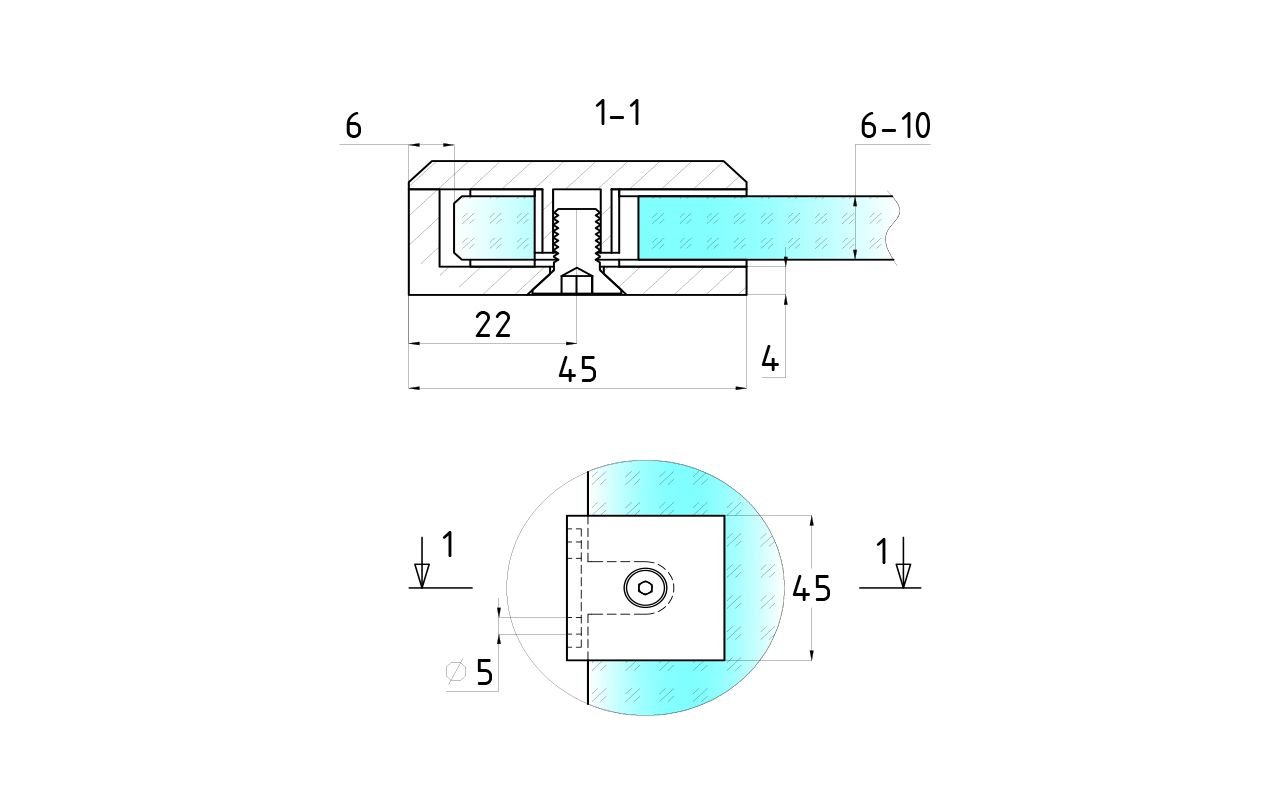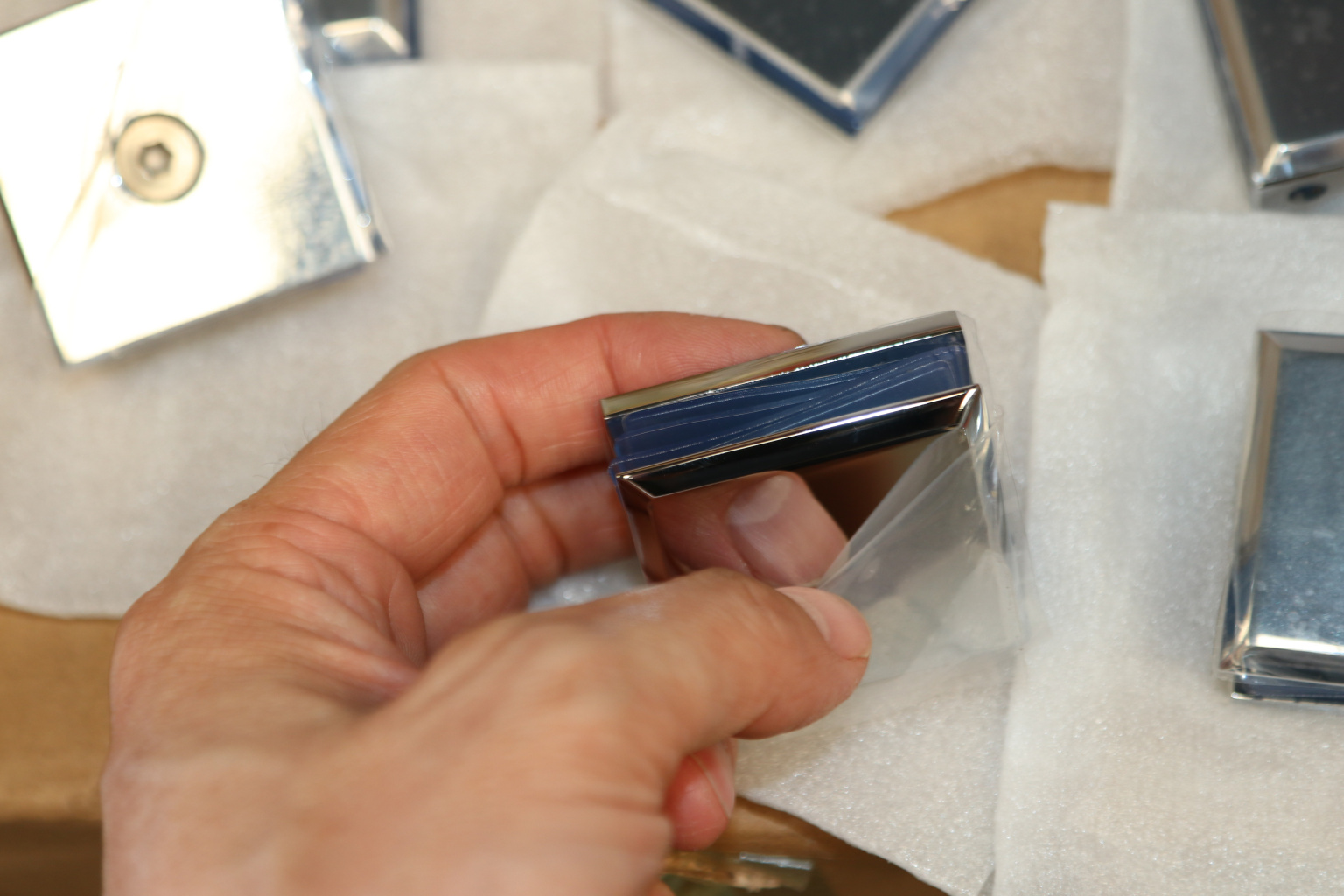 Коннектор для душевой кабины стена-стекло 90°, 45х45 мм. Материал - латунь-хром, поверхность - полированная