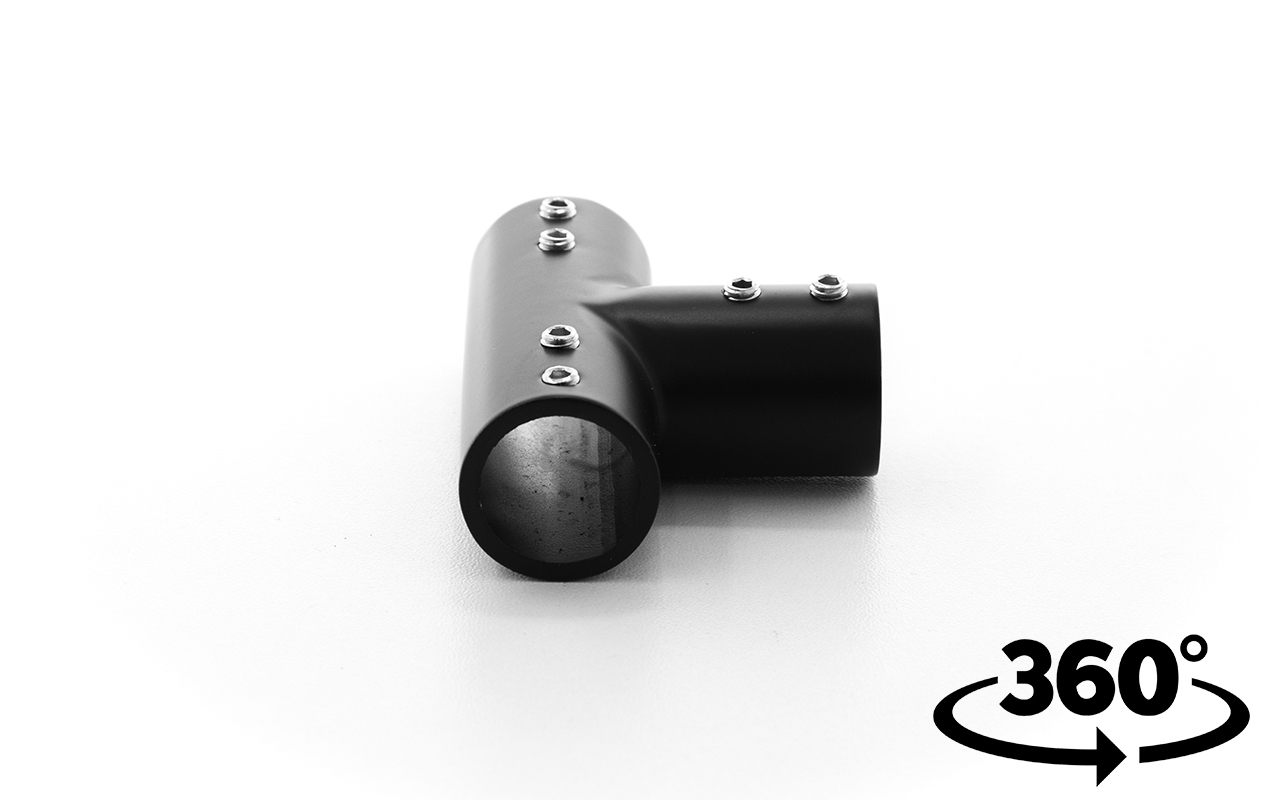 Труба вставляется в тройник со всех сторон и фиксируется с помощью шестигранника