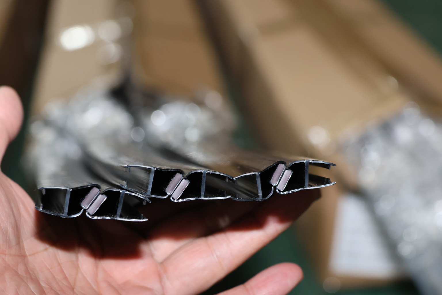 Монтируется по всему периметру стеклянного листа. Позволяет герметично соединять стеклянные панели между собой благодаря встроенному магниту. Толщина одного типоразмера составляет 1.5 мм, длина – 2200 мм.