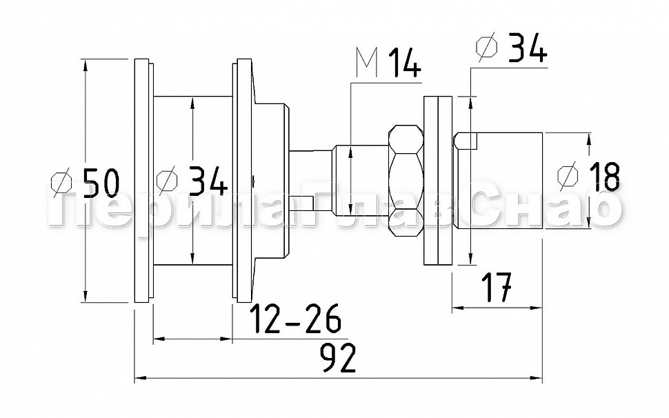 под стекло от 16 до 28 мм (отверстие 40 мм)шаг резьбы шпильки М14 рутеля - 1,5мм