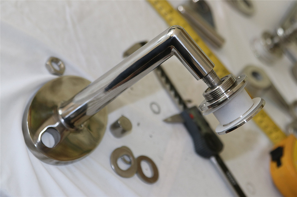 Рутель шарнирный (стеклодержатель) используется при спайдерном остеклении, остеклении фасадов, остеклении вертикальных фасадов, остеклении вентилируемых фасадов, монтаже входных козырьков из стекла, монтаже входных козырьков из поликарбоната. Отверстие в стекле под рутель нужно делать 40мм. Предназначен для стекла или поликарбоната от 16 до 28 мм. Шаг резьбы рутеля 1,5 мм. При желании можно монтировать более тонкое стекло с применением прокладочных элементов.