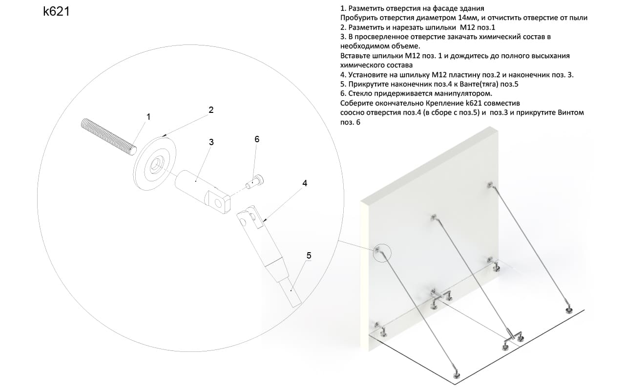 -Крепления тяги к стене на шпильку м12 и тяги диаметром 10мм.