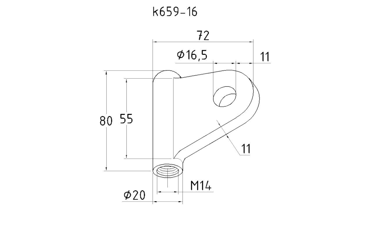 Крепление рутеля к тяге (серьга). Состоит из костяка с резьбой M14 и техническим отверстием 16,5 мм.