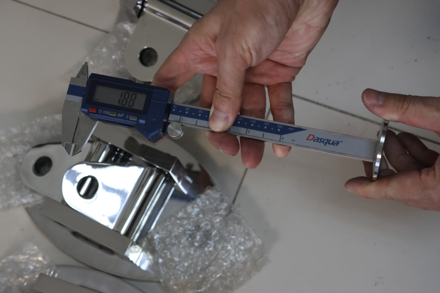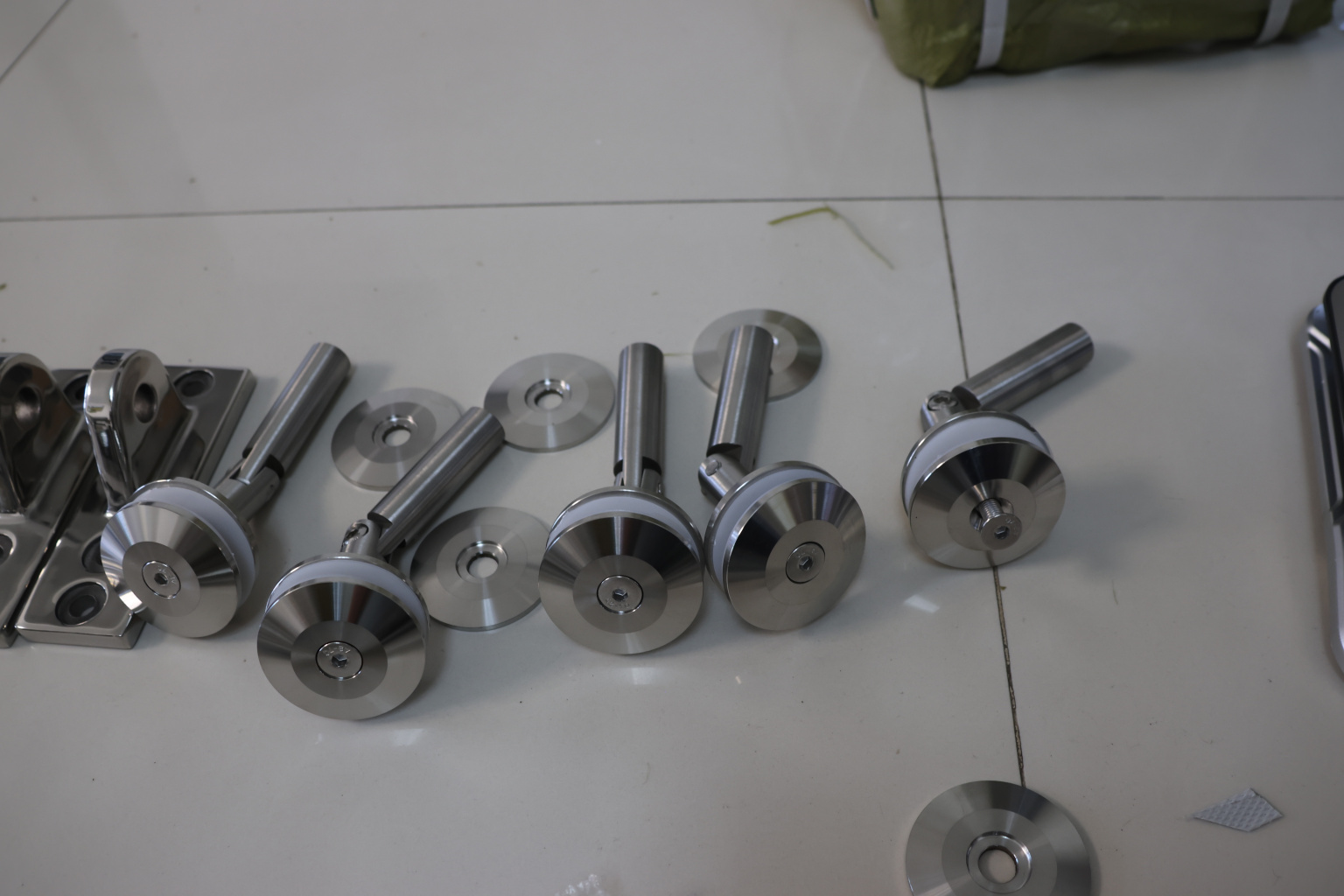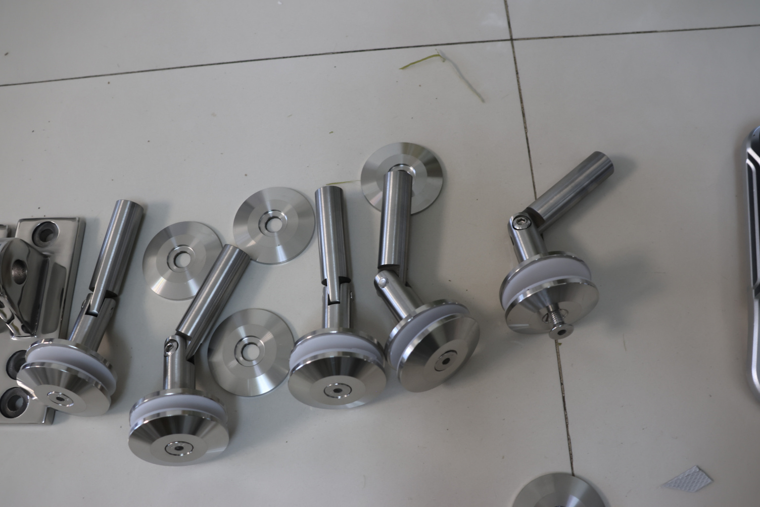 узел крепления стекла к стене, поверхность шлифованная, марка стали AISI 304.