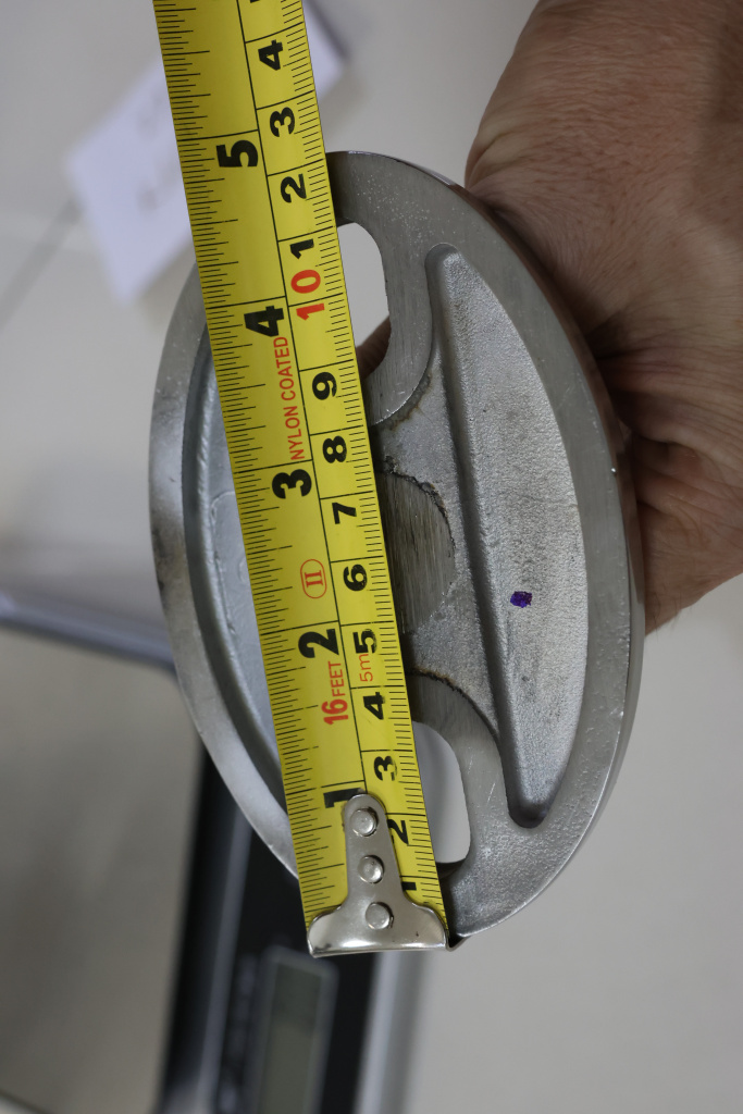 Держатель рутеля к стене стеклянного козырька. Литая, полированная деталь, выполненная из стали AISI 316. Состоит из фланца толщиной 10 мм и шириной 80 мм и дистансера с резьбой М14. Размер дистансера 160 мм от стены до центра отверстия. В основании имеется два овальных крепёжных отверстия размером 16,5 на 25 мм.