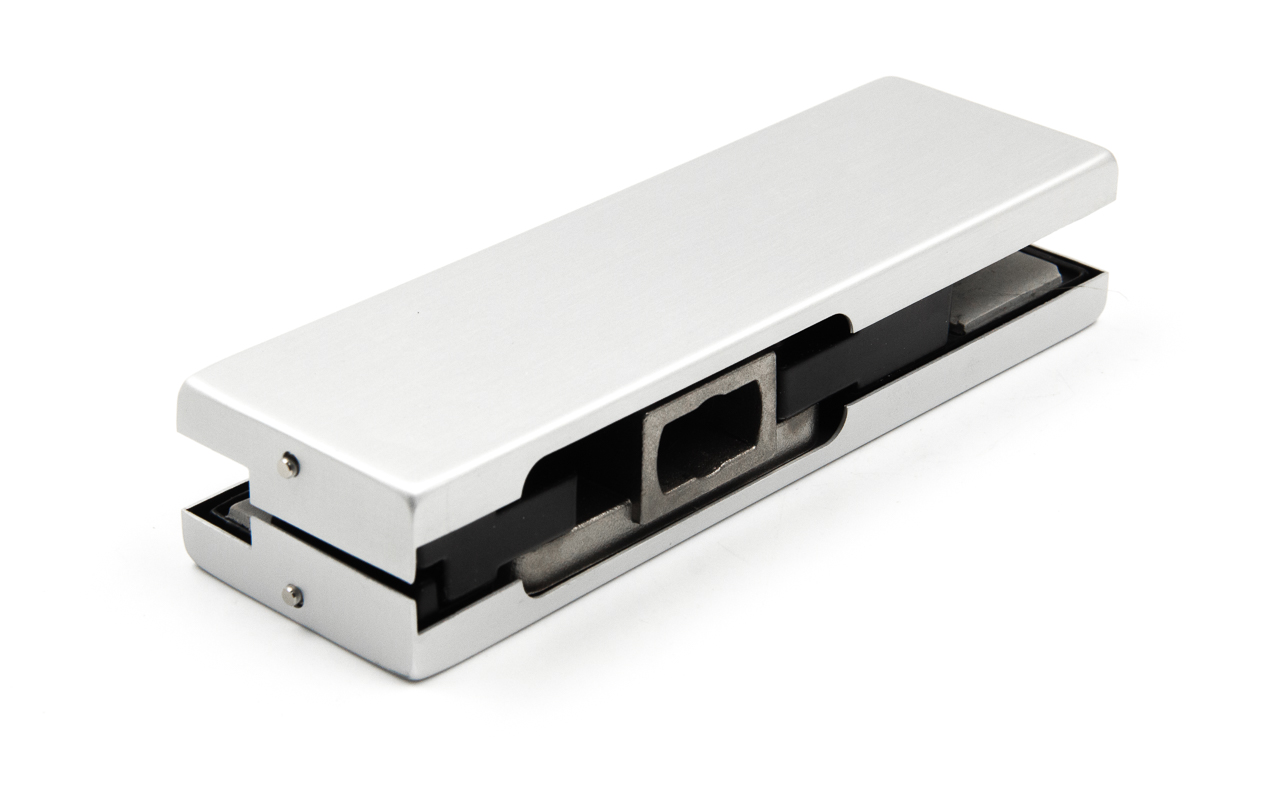 Сбоку нажимаем на крепления крышек и снимаем. Отвинчиваем винты, и фиксируем фитинг в подготовленный вырез в стекле. Далее закручиваем и фиксируем обратно крышки.
