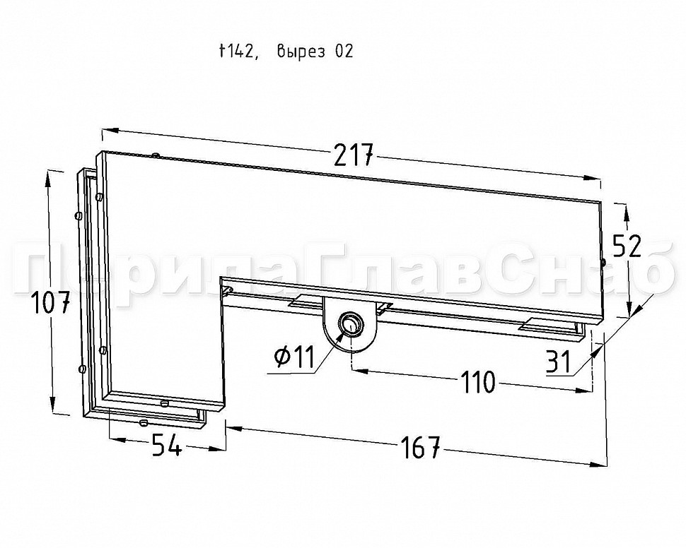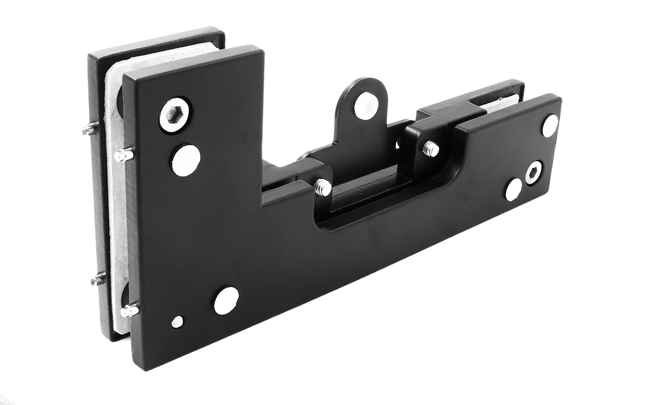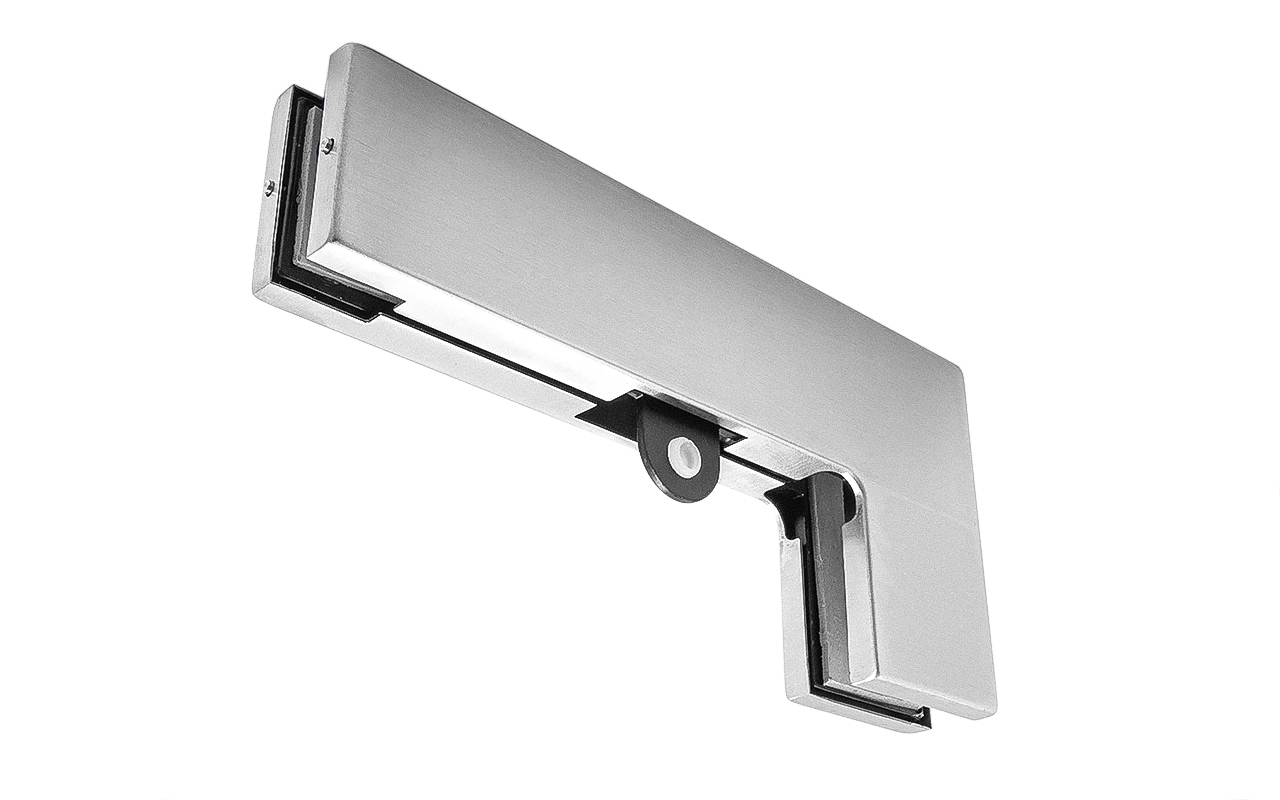для соединения стационарной панели стеклянной перегородки с верхней фрамугой. Стопор ограничивает открывание двери в любую из сторон по выбору. Является ответной частью на стекло для прямоугольного ригеля замка t152 SSS, при монтаже замка на верх двери. При необходимости маятникового открывания ограничитель открывания двери не устанавливается. Толщина стекла 10-12 мм. Для установки стекла 8 мм комплектуется дополнительной асбестовой прокладкой t111 2мм толщиной.