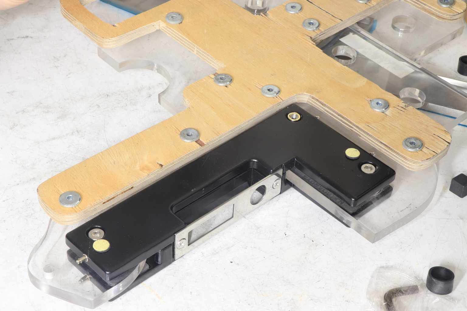 сбоку нажимаем на крепления крышек и снимаем. Отвинчиваем винты, и фиксируем фитинг в подготовленный вырез в стекле. Далее закручиваем и фиксируем обратно крышки.