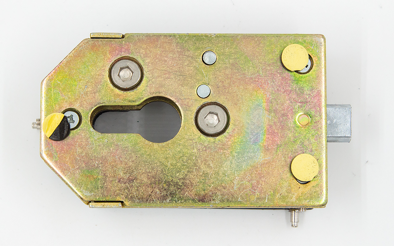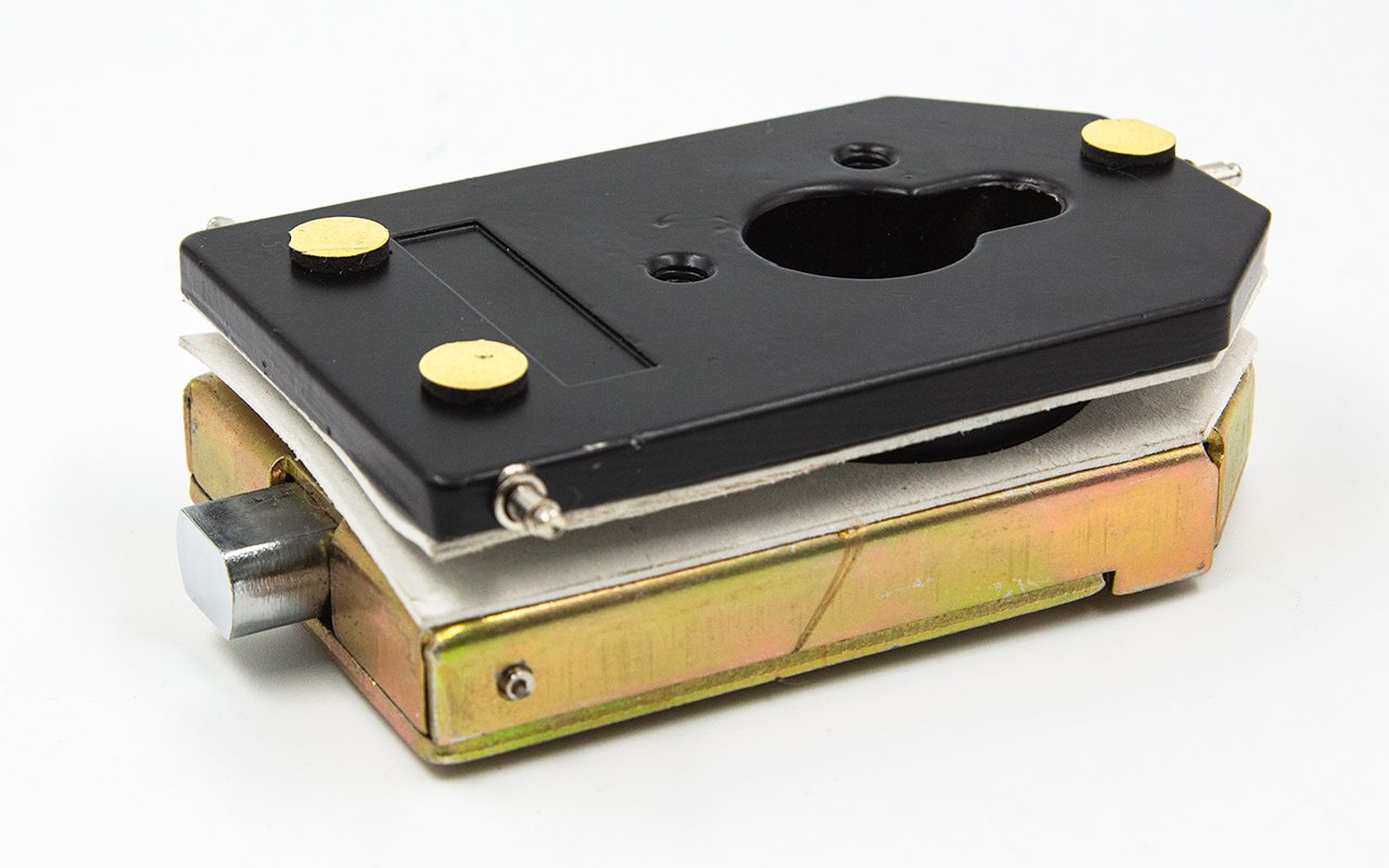 Замок вертикального типа включает в себя ответную часть для пола или стены.