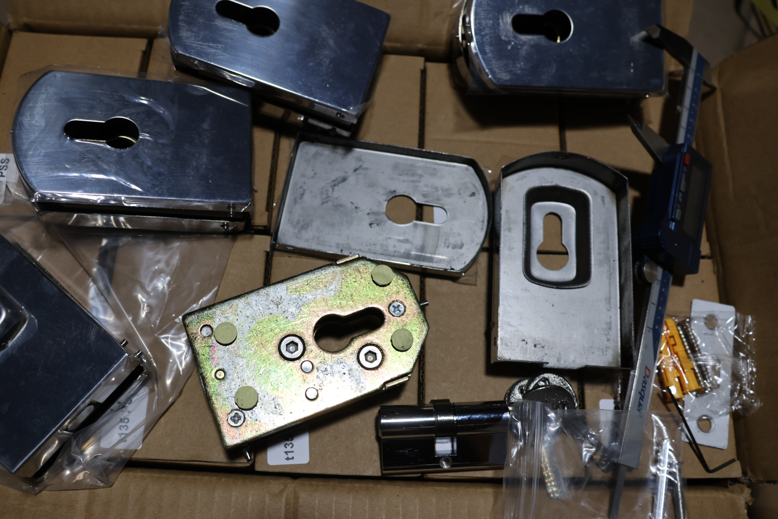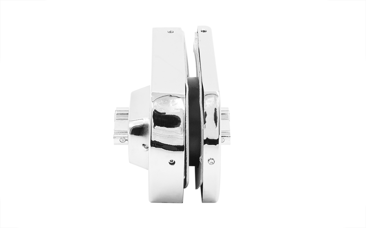 Замок для стеклянной двери вертикальный с ответной частью на стену и пол, полированный, вырез 15 t135 PSS