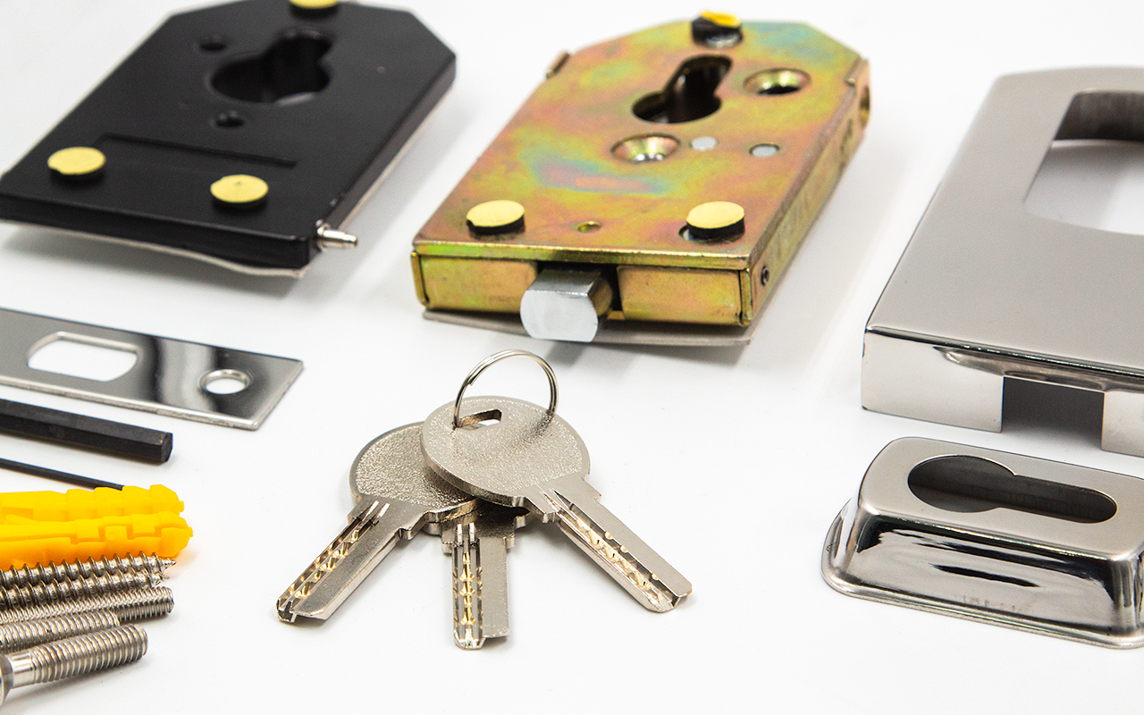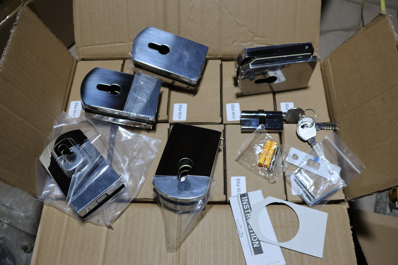 снимаем крышки замка, с помощью шестигранника раскручиваем замок на две части, фиксируем замок в заранее заготовленный вырез стекла. И обратно собираем- закручиваем замок и закрываем крышки