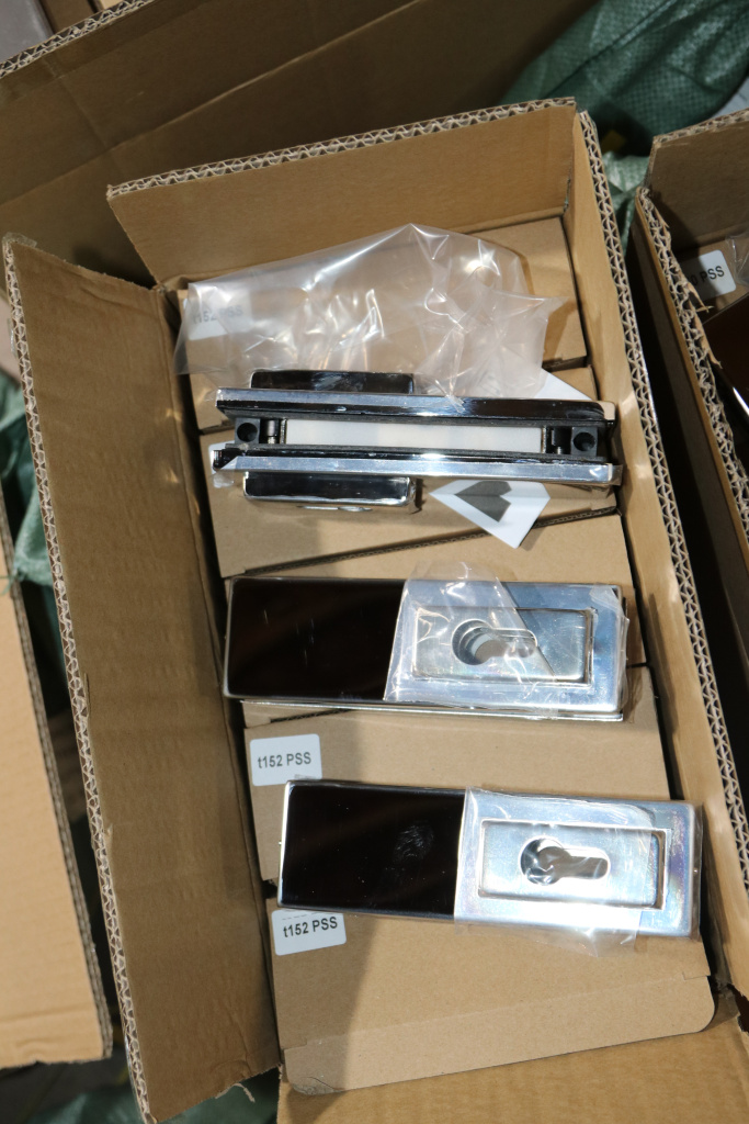 Сбоку нажимаем на крепления крышек и снимаем. Отвинчиваем винты, и фиксируем замок в подготовленный вырез в стекле. Далее закручиваем и фиксируем обратно крышки. Ответную часть крепим под замком с пробуренным отверстием под ригель.