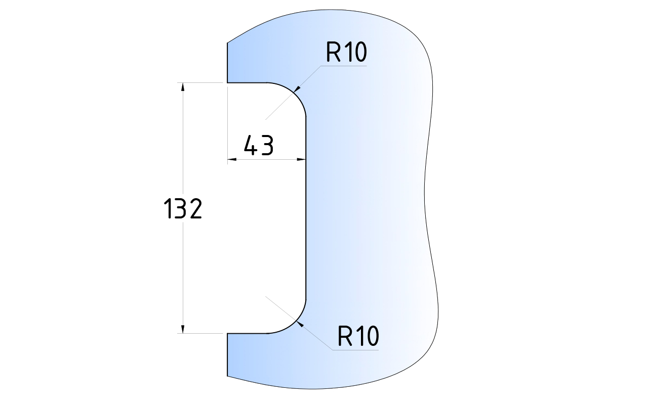Замок центральный с прямоугольным ригелем, полированный, вырез 13 t152 PSS