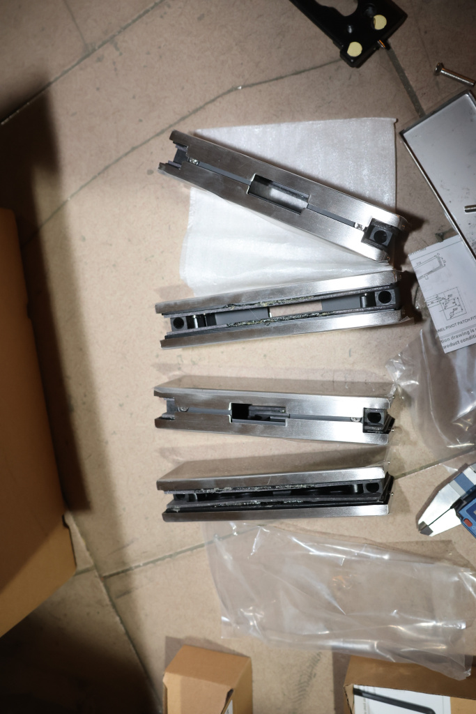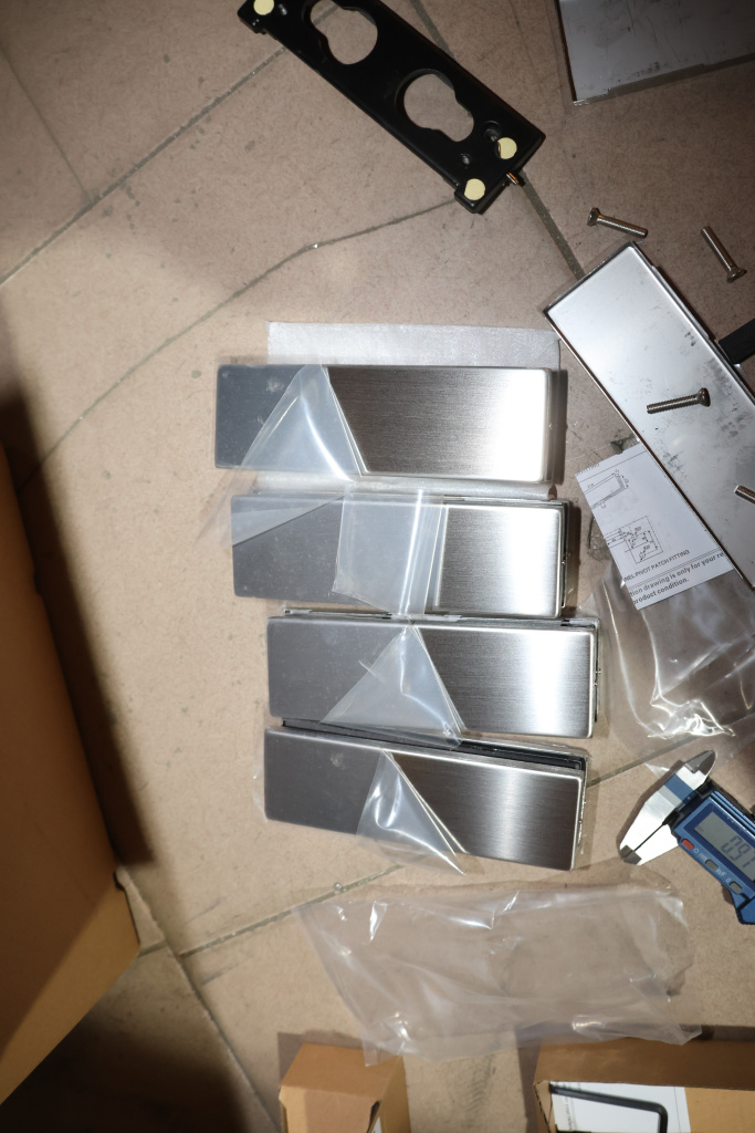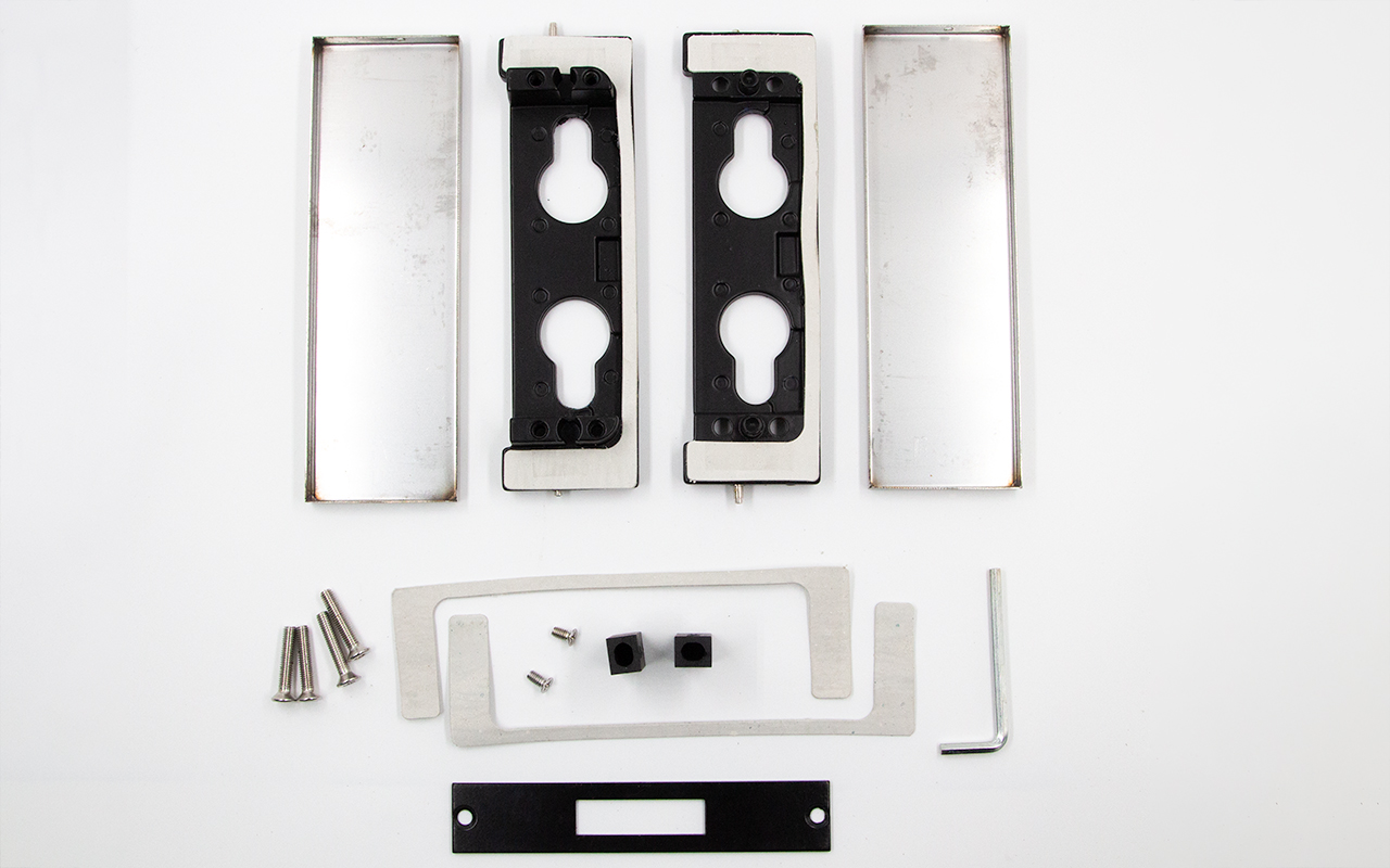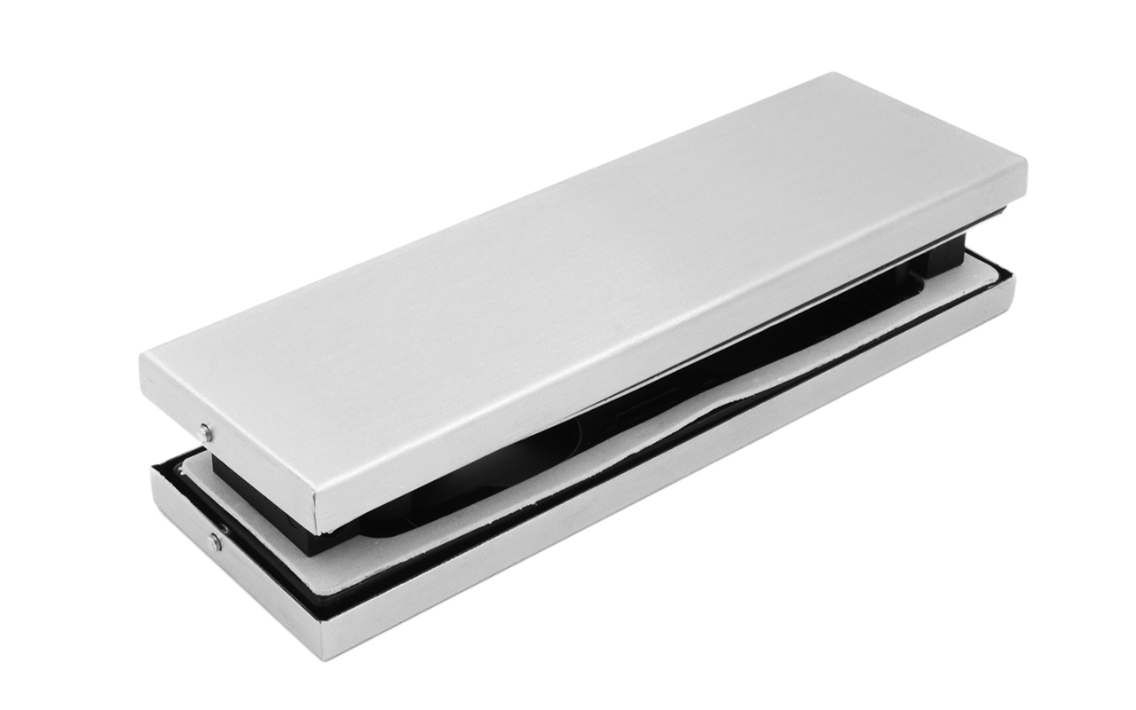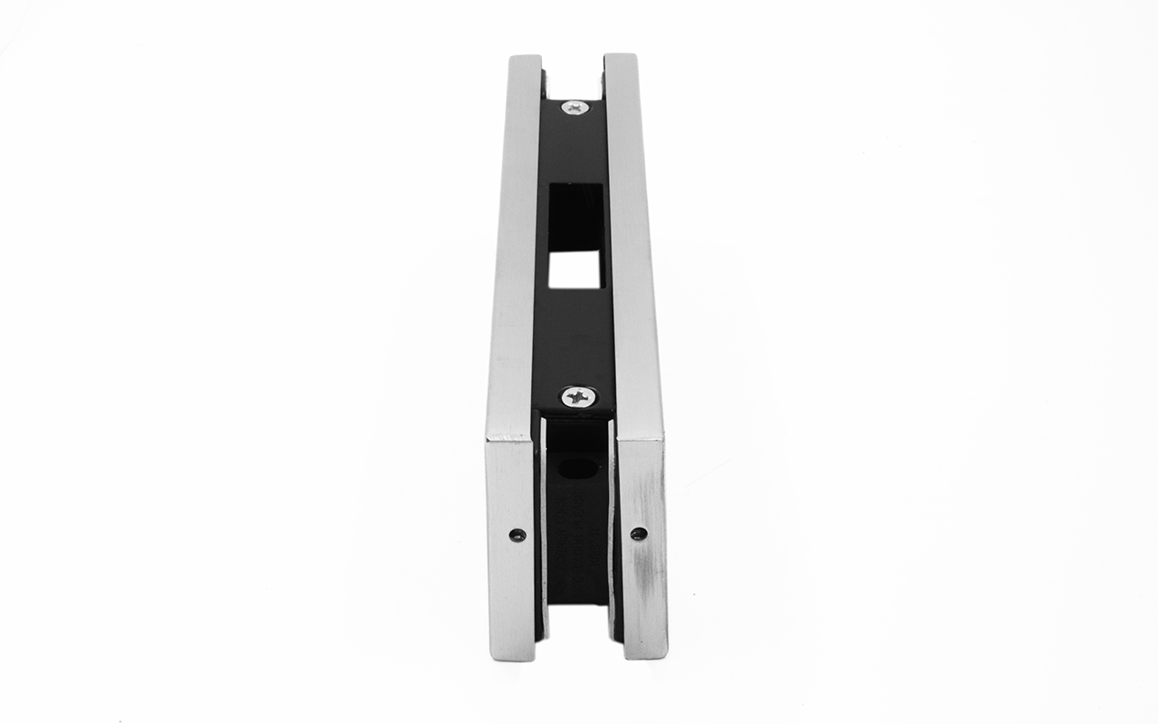 Сбоку нажимаем на крепления крышек и снимаем. Отвинчиваем винты, и фиксируем ответную часть замка в подготовленный вырез в стекле. Далее закручиваем и фиксируем обратно крышки.