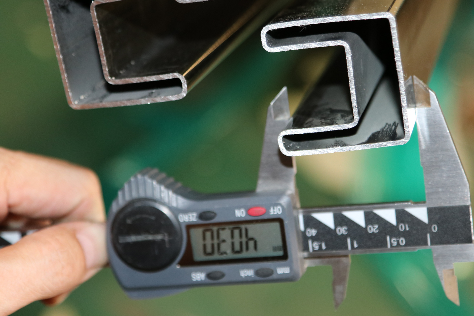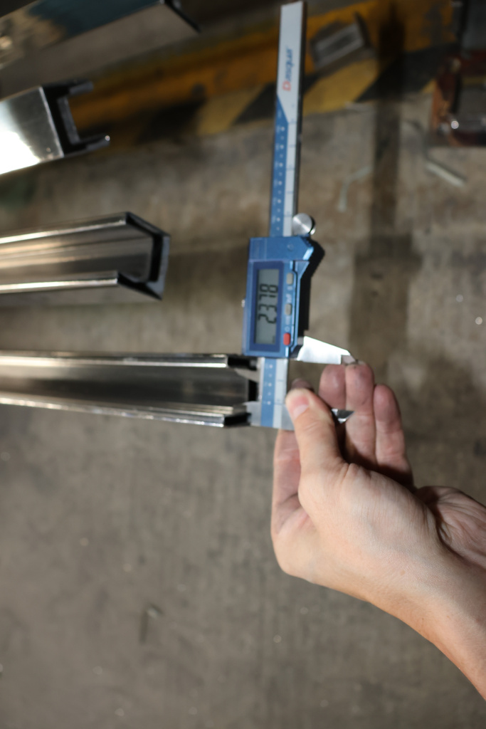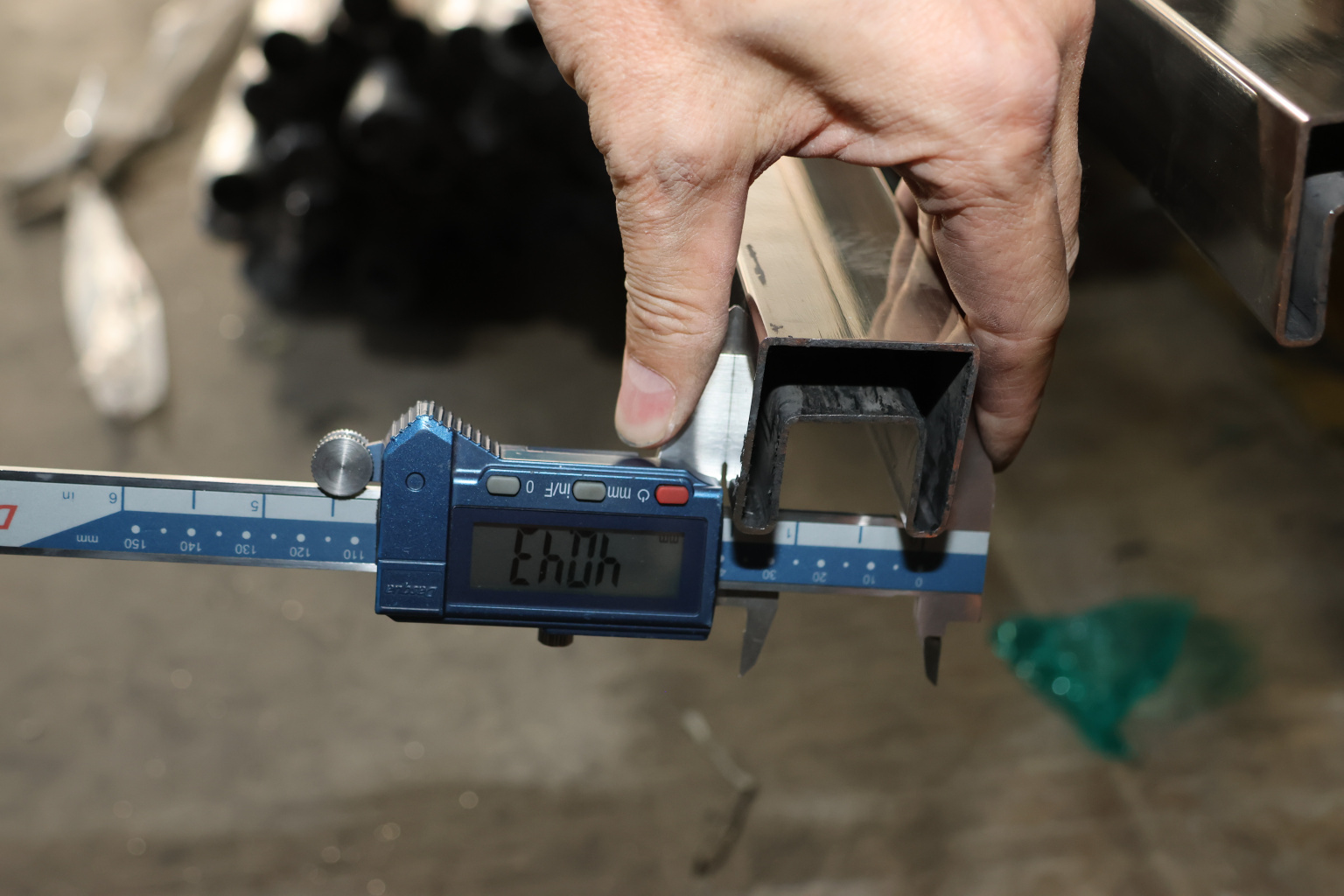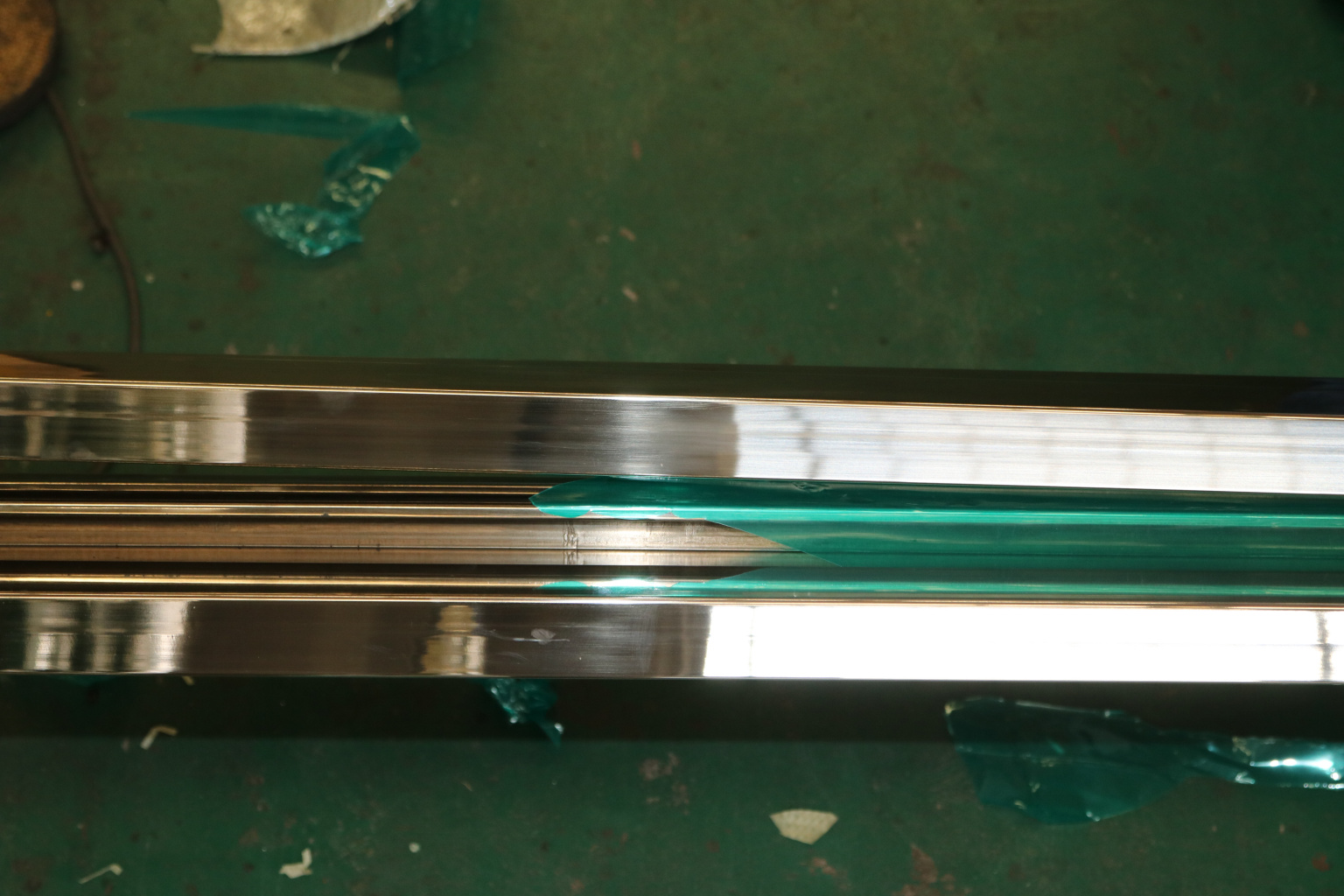 Труба 40х40 мм с пазом 24х24 мм под стекло, полировка, AISI 304 #600