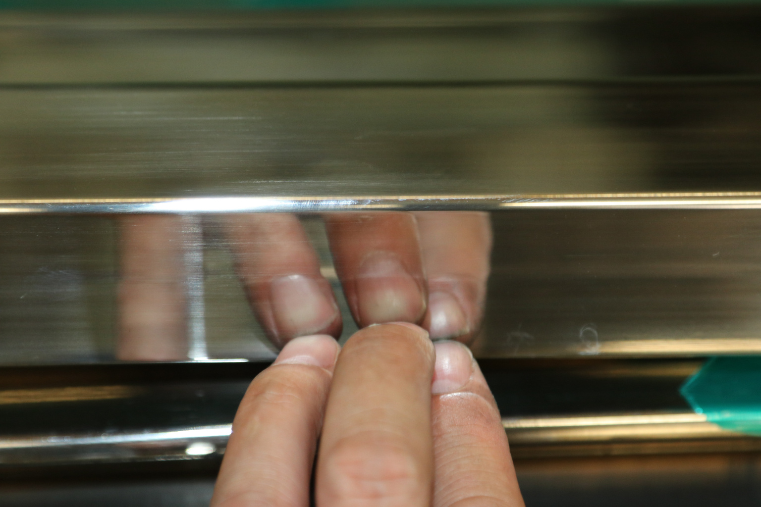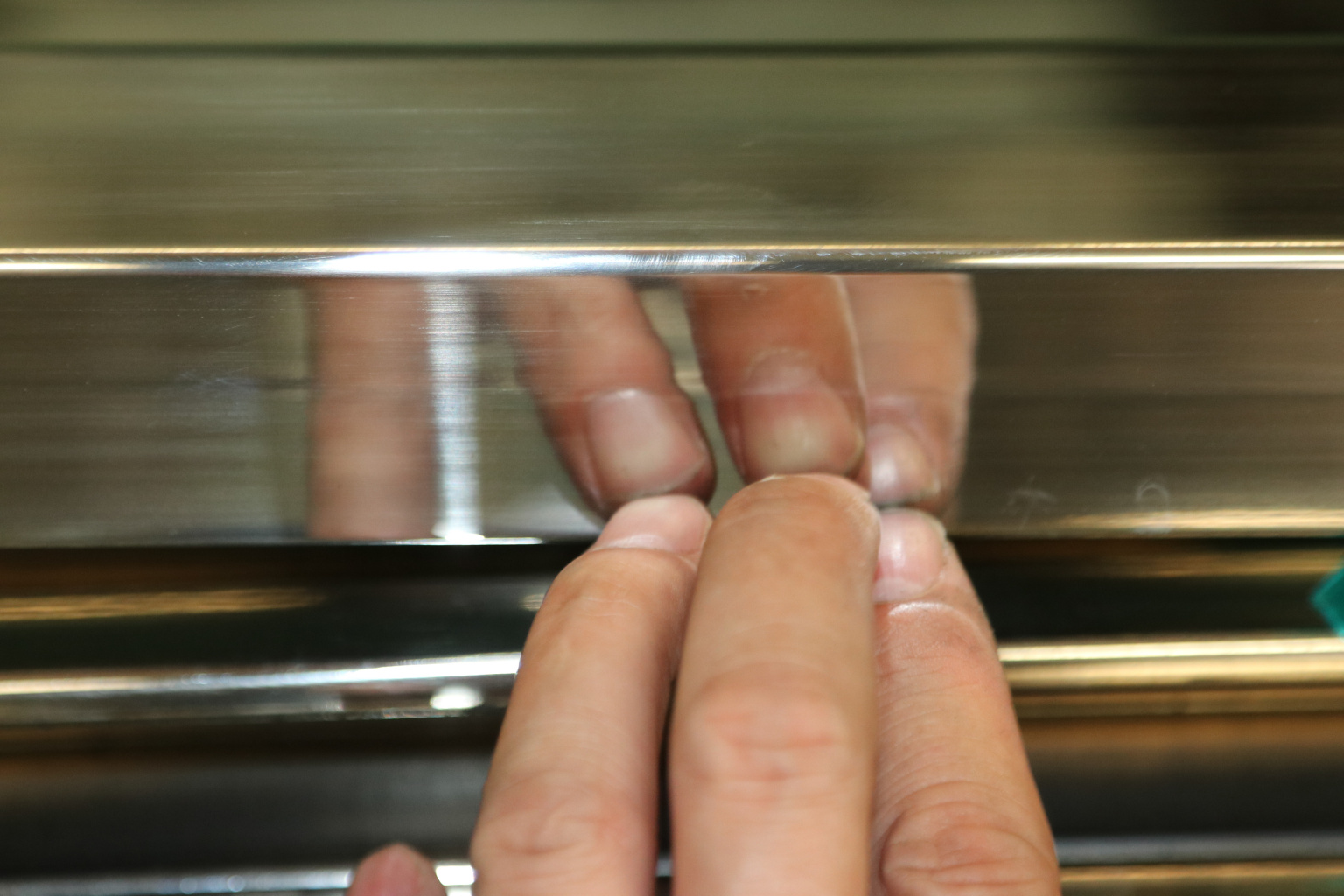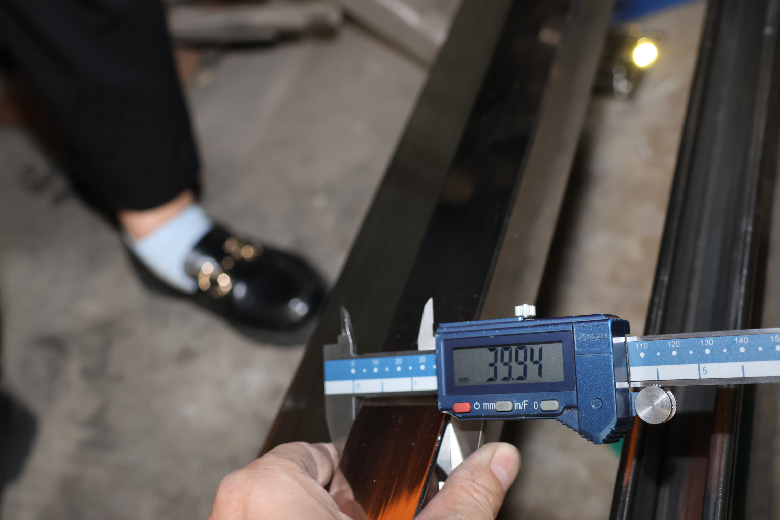 Труба 40х40 мм с пазом 24х24 мм под стекло, полировка, AISI 304 #600