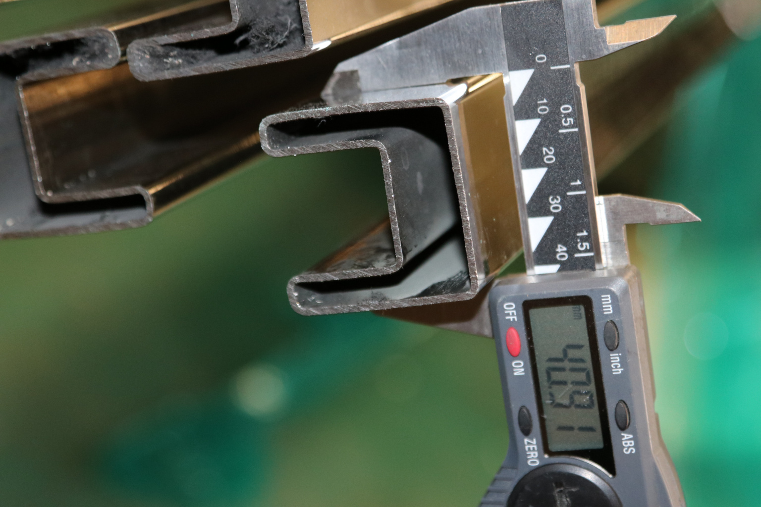 Труба 40х40 мм, с пазом 24х24, полированная 600Grit, AISI 304 k856
