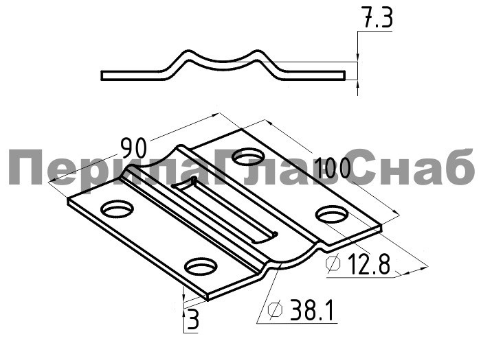 90х100х3 мм, вынос 7.3 мм, отверстия Ø12.8