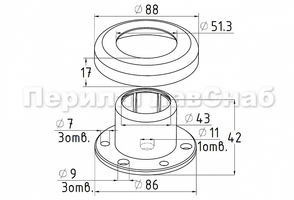 Cовершенно незаменимая деталь для установки стоек самосборных ограждений на деревянных ступенях или плитке, в том числе и в бетон.