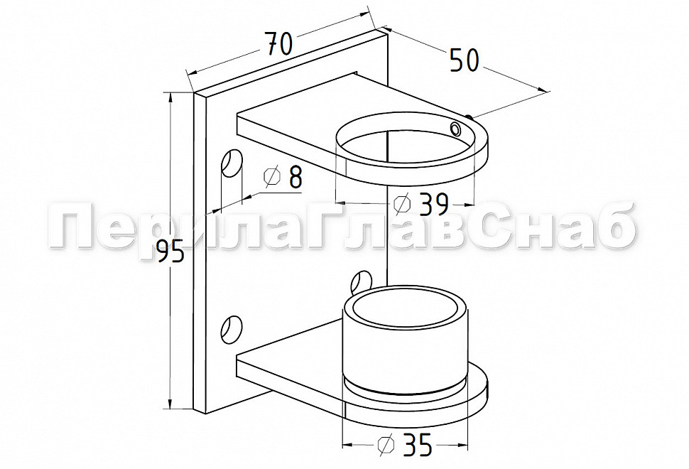 Боковой крепеж С-пластина стакан для Ø38.1 мм, (AISI 201) k339-3