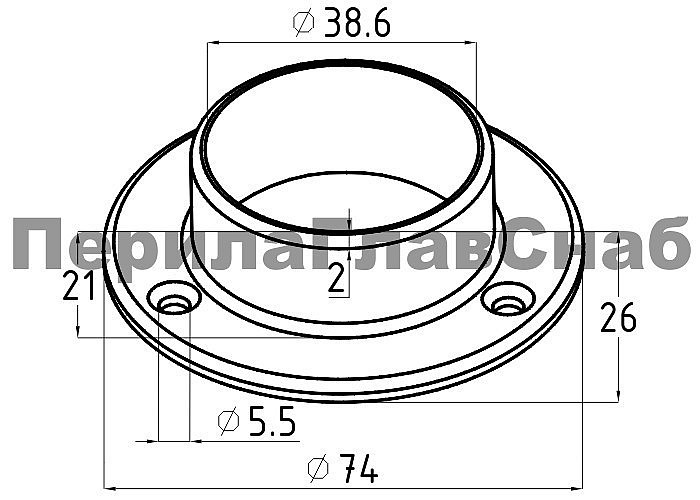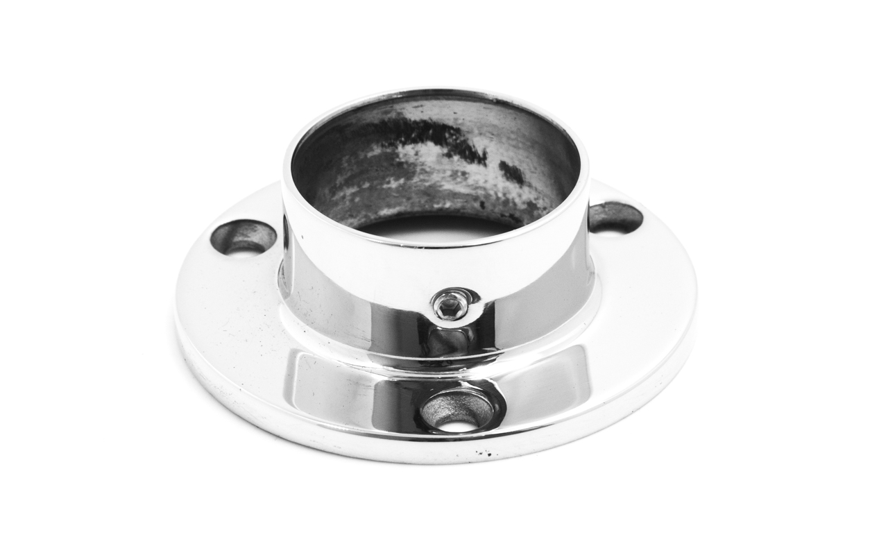 Фланец для трубы Ø38.1 мм, полированный, литой, под 3 самореза 4.8 мм, (AISI 316) k033-3