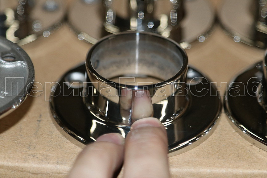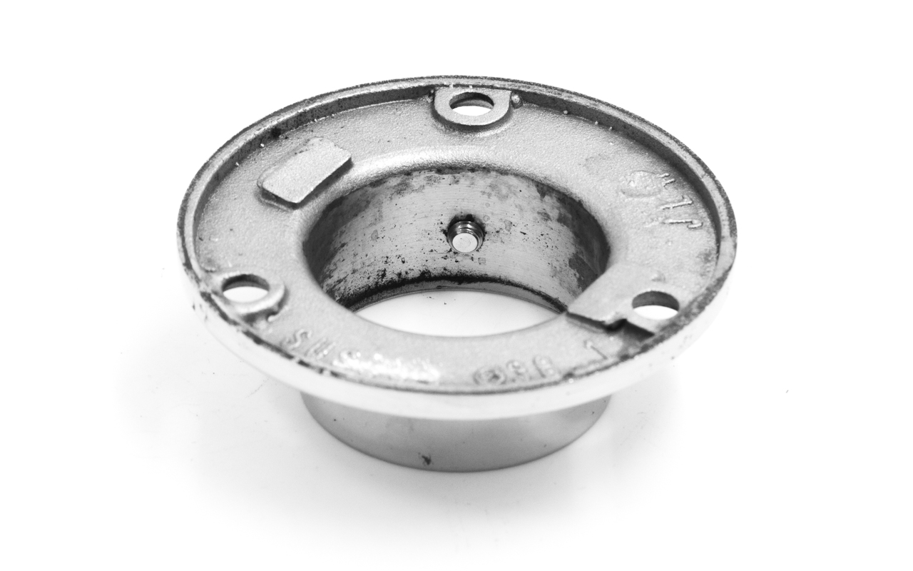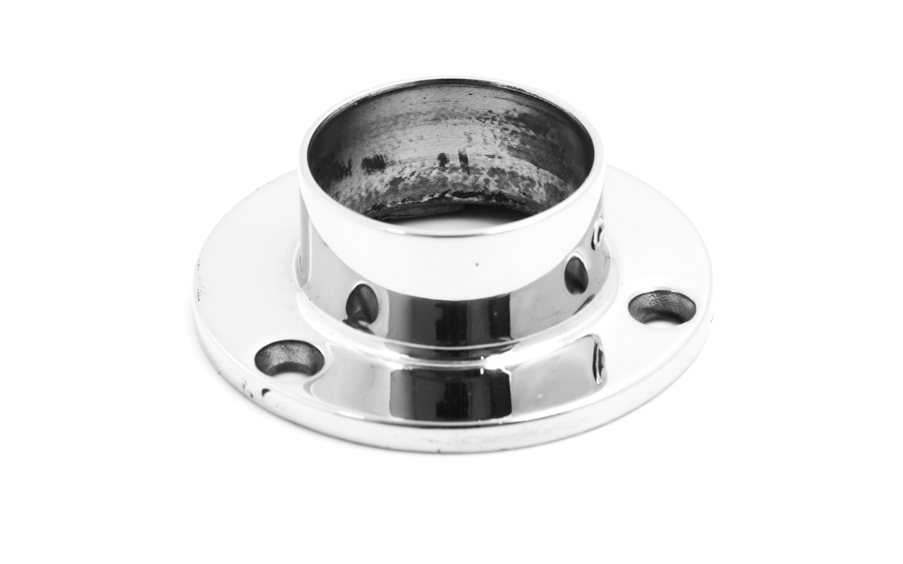 Фланец для трубы диаметром 38.1 мм. Полированный, литой, под три самореза 4.8 мм. Марка стали - AISI 316