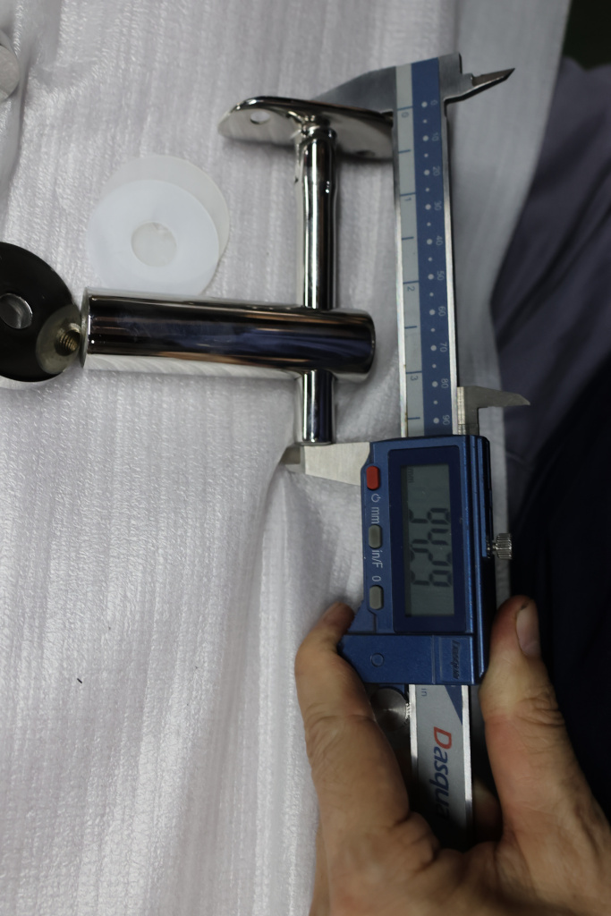 Деталь удобная в работе, не требует никаких специальных навыков, легко монтируется на ограждении для крепления выносного поручня на несущем стекле.