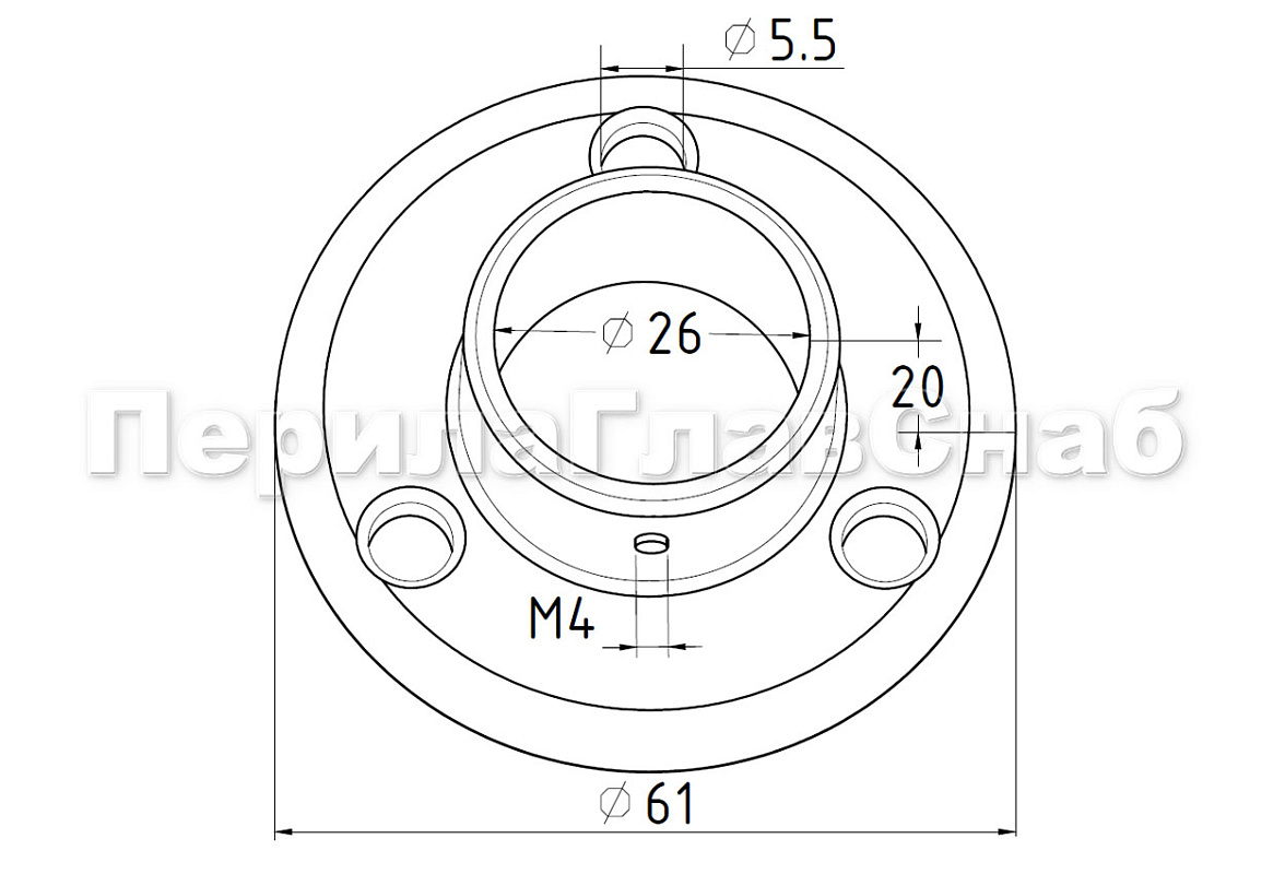 Применяется для крепления трубы Ø25.4 мм поручня лестничных перил в стену.