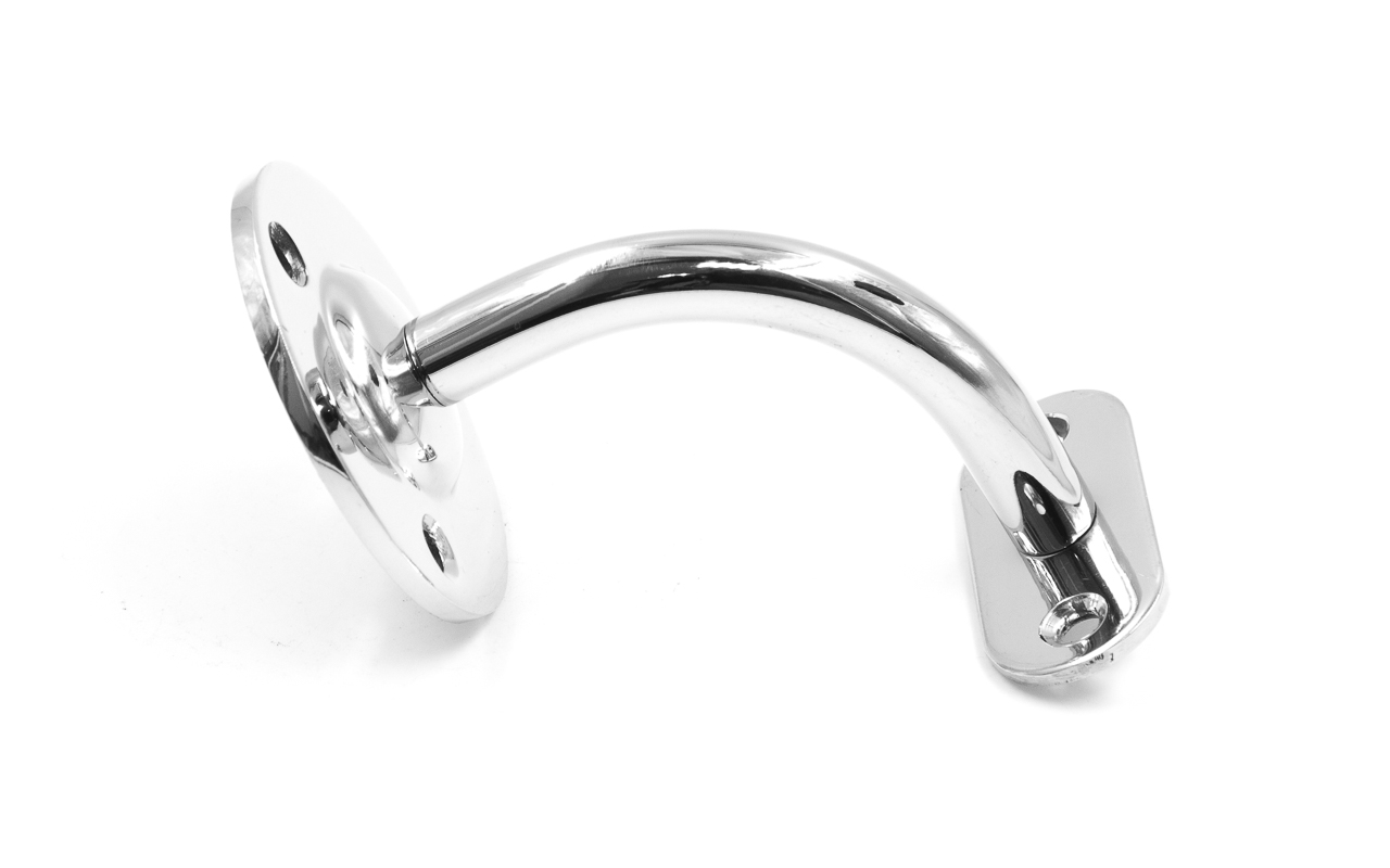 Поручень крепится к ложементу пристенка на саморезы, поэтому фитинг универсально подходит как для традиционных сварных ограждений, так и под самосбор.
