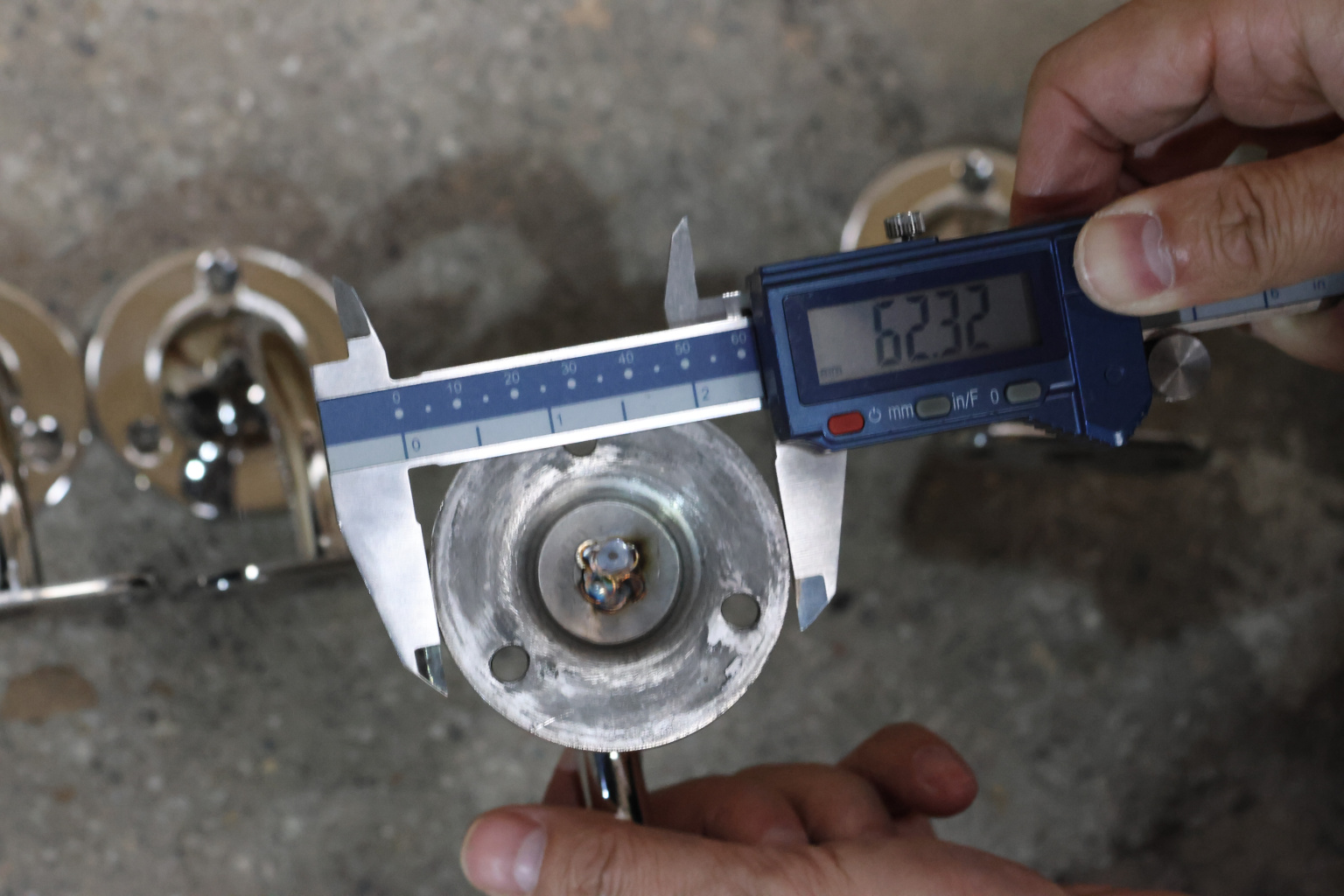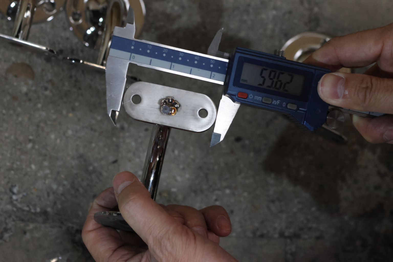 Пристенок с ложементом на плоскость, вынос 65х65, Ø60х3 мм, сварной, нержавеющая сталь AISI 304 полированная k234-5