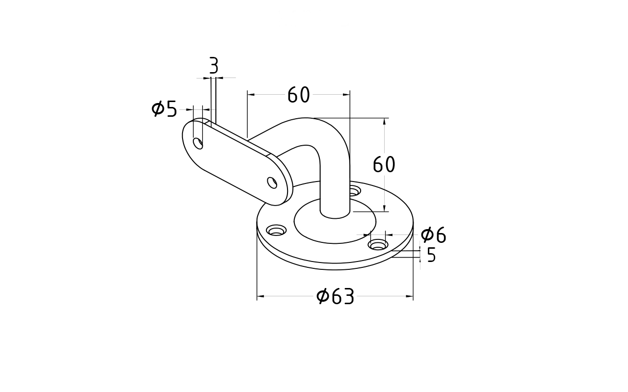 Пристенок с ложементом на плоскость, сварной, вынос 65х65, Ø60х3мм, 25х45х2мм, полированный, марка стали - AISI 304
