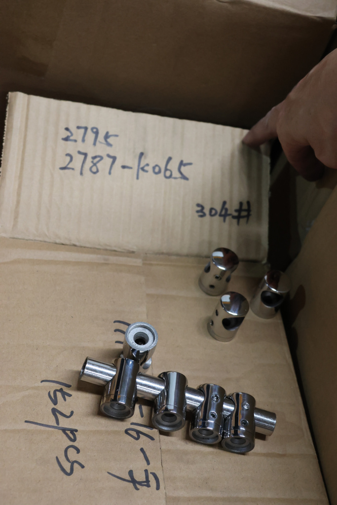 Наконечник палец на стойку из профильной трубы 40х40 мм, с регулируемым ложементом под поручень Ø50.8 мм, полированный, литой, облегченный нержавеющий AISI 304 k239-3