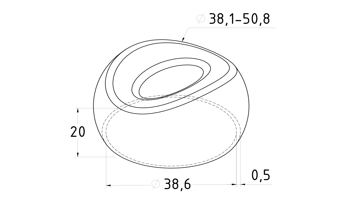 Наконечник штампованный (СПС) косой 30° на трубу Ø38.1 мм, для поручня Ø50.8 мм, полированный, нержавеющий, AISI 304, 600Grit, k016-3