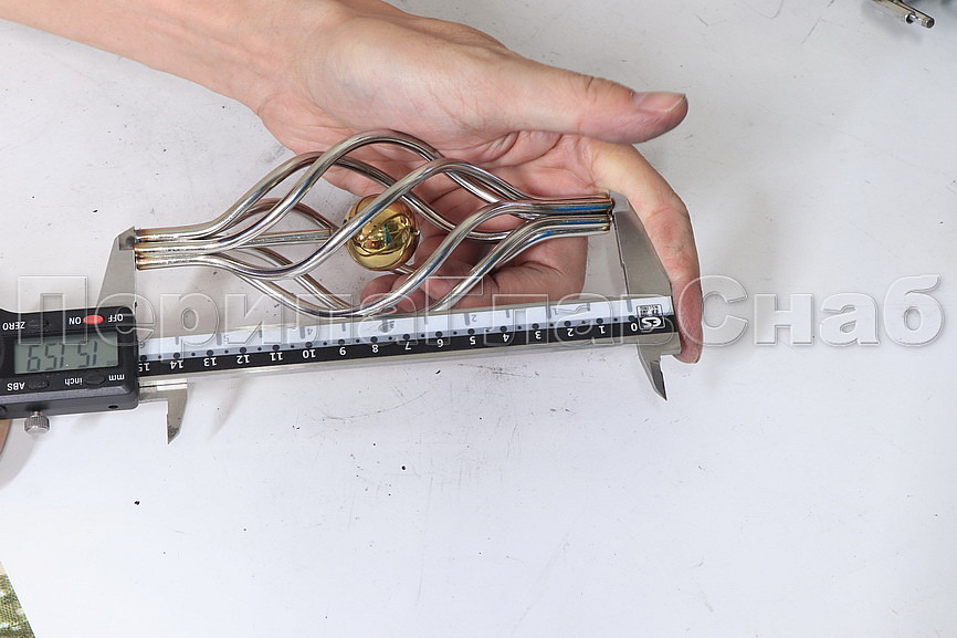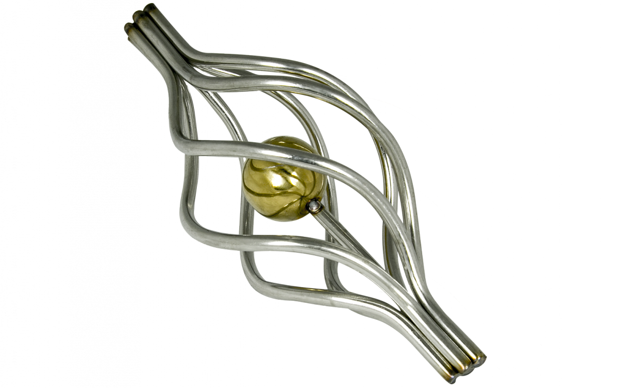 Декоративная вставка (корзинка) для стойки Ø25 мм, с золотым шаром. Деталь полированная, литая. Марка детали - AISI 304
