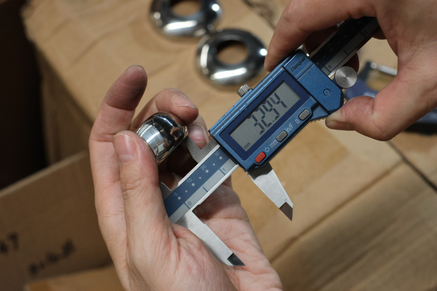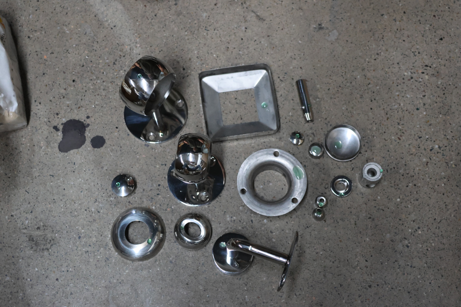 Наконечник штампованный (СПС) прямой 90° на трубу диаметром 32 мм, для поручня диаметром 38.1-50.8 мм. Деталь полированная, нержавеющая. Марка стали - AISI 304